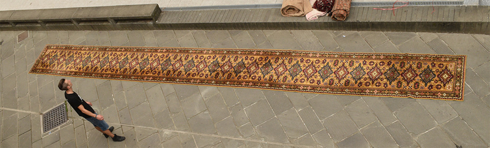 Savonnery Spagna, Senza titolo, Misure cm 1100x99 Passatoia Savonnery Spagna colore molto luminoso, realizzato su ordinazione.Perfettamente dritto