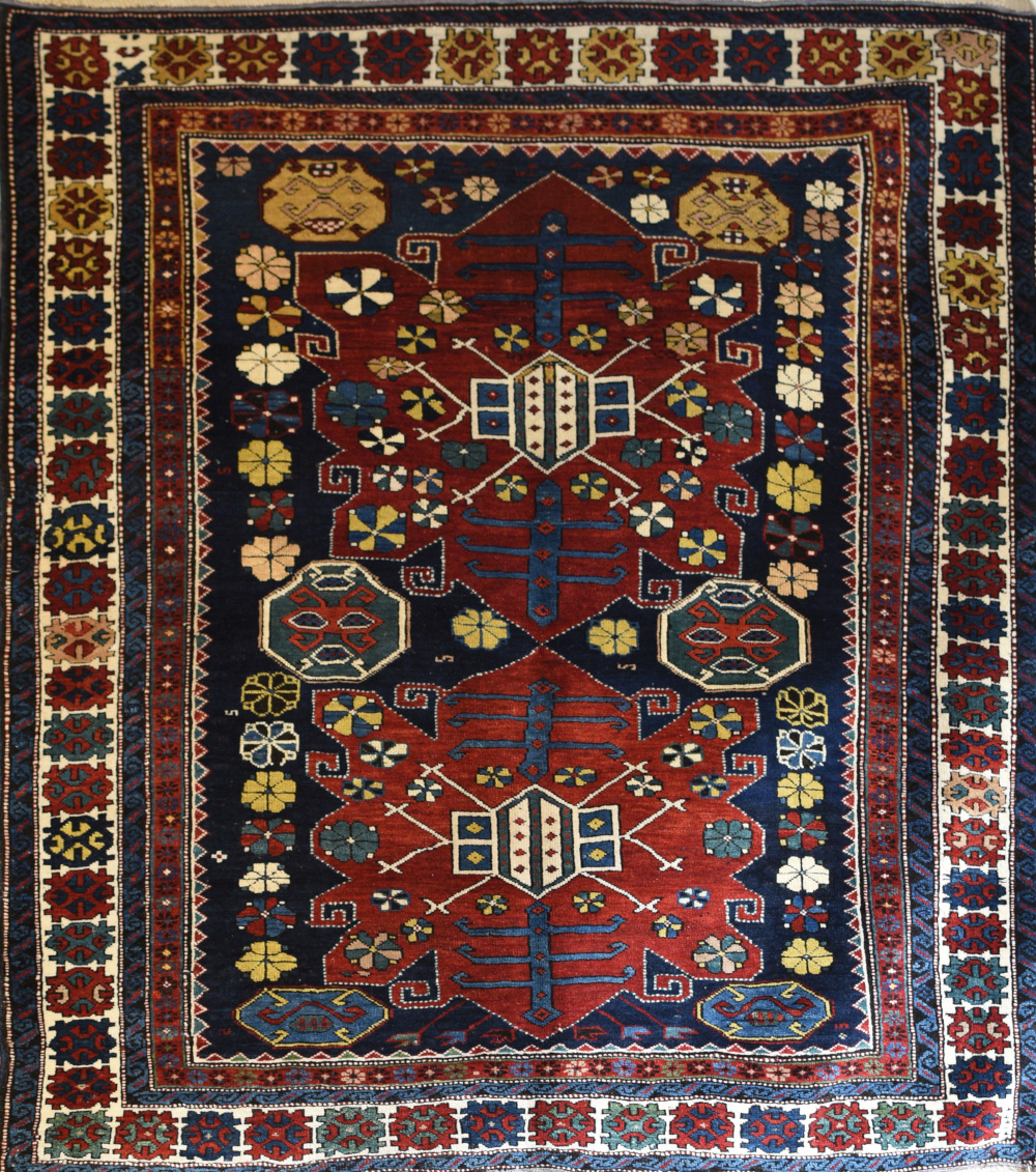Kuba Caucaso, Senza titolo, Misure cm 144x123 Kuba Città del distretto Azerbaijan di Shirvan sede un antico Khanato. I tappeti di Kuba sono caratterizzati da un’eterogenea decorazione stilizzata, spesso composta da motivi afshan o kharchanghi. Fine esemplare antico in perfette condizioni. Questo tappeto è interessante per la forma quadrangolare.