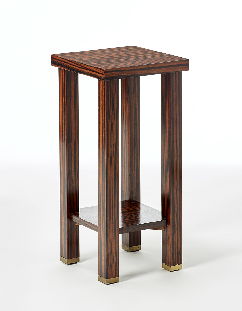 Gueridon Art Déco with square top. Execution by Atelier E. J. Ruhlmann, Paris, 1931. Macassar ebony solid wood veneered structure, brass tips. (27x65.2x30 cm.) (slight defects)