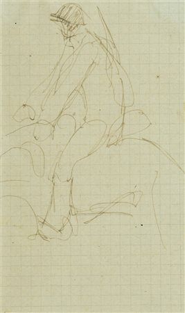 Lorenzo Viani Soldato a cavallo, 1917 - 1918 c.a. Inchiostro su carta, cm. 16,5x10 Autentica di Enrico Dei su foto.