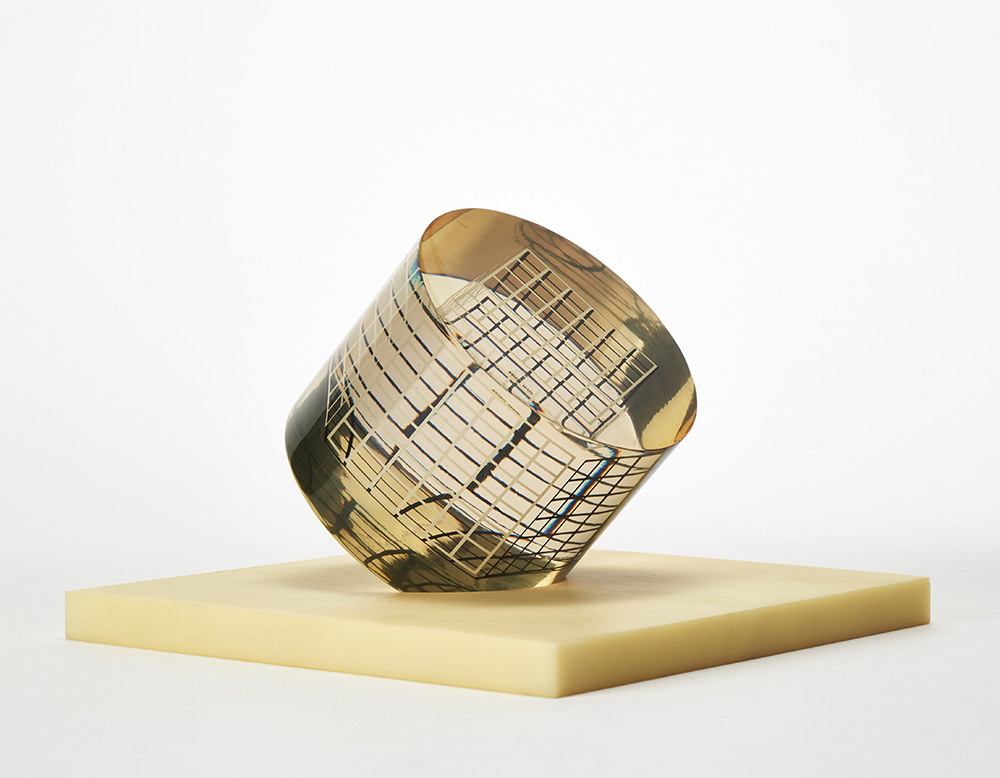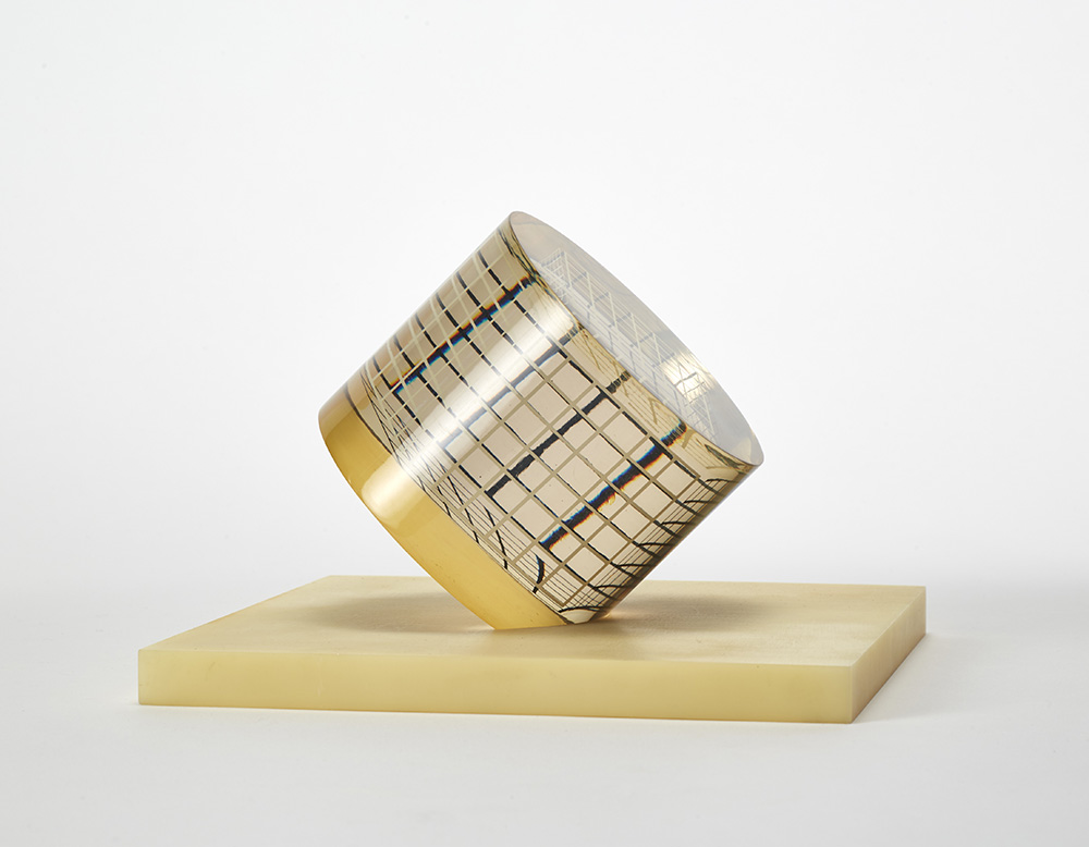 "Deformazione ottico dinamica di un cubo in un cilindro - Serie a reticolo L"