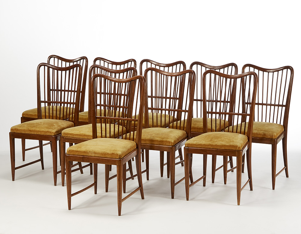 Paolo Buffa (Milano 1903 - Milano 1970)Dieci sedie in legno di mogano e noce...