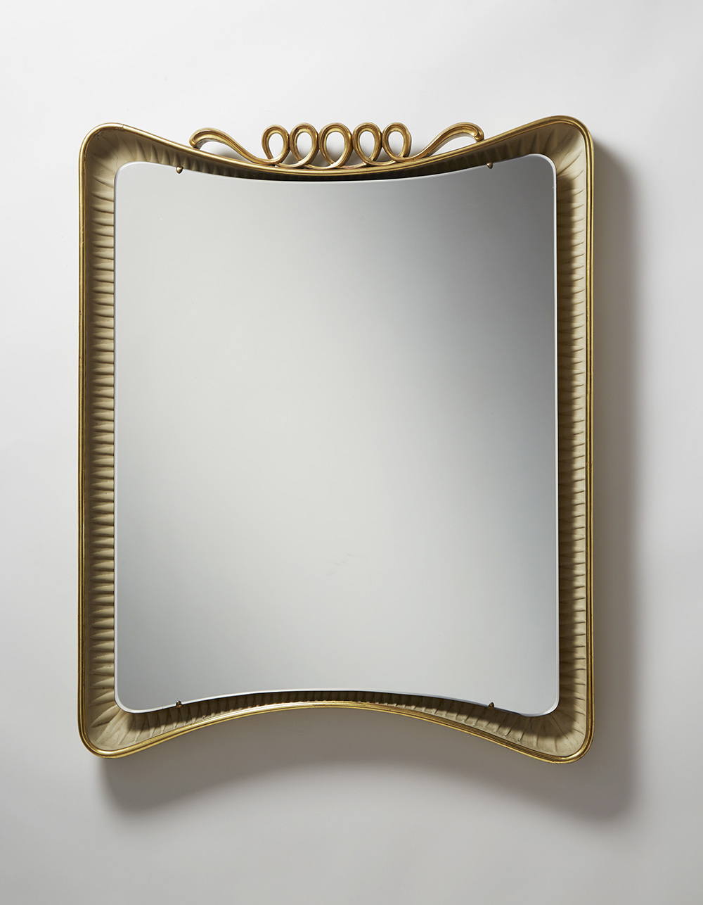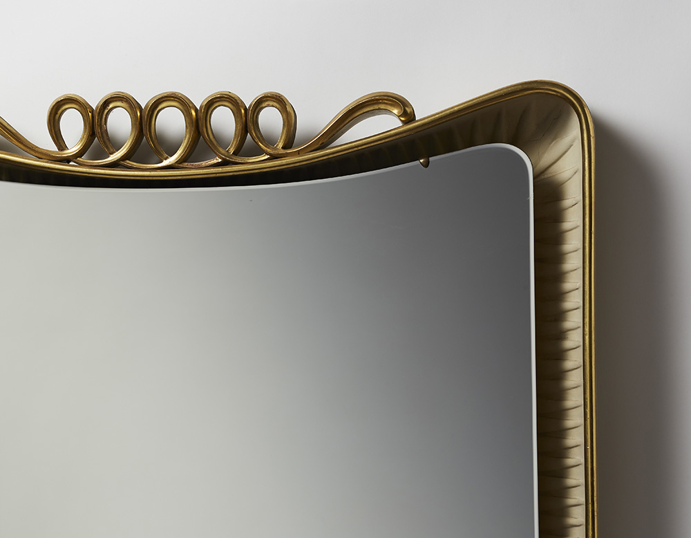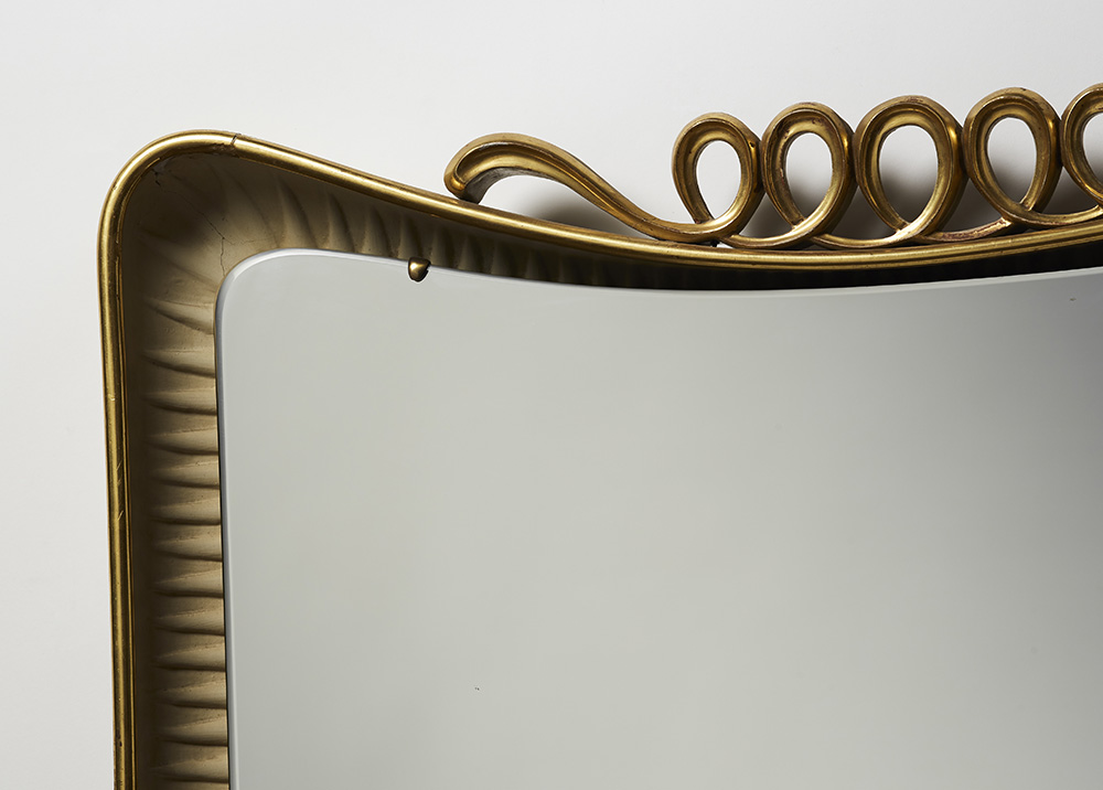 Specchio retroilluminato. Produzione Atelier Borsani, Italia, 1940ca. Vetro con cornice in legno decorato a foglia d’oro e finitura a gesso. (cm 97x120x10) (lievi difetti e piccoli restauri)