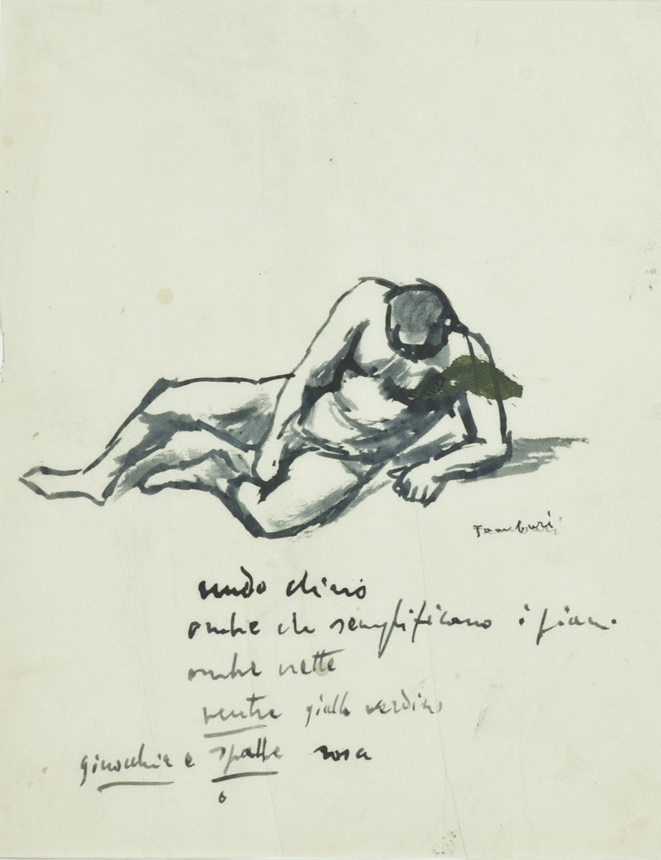 Orfeo Tamburi Nudo China acquerellata su carta, cm. 28x22 Firmato in basso a...