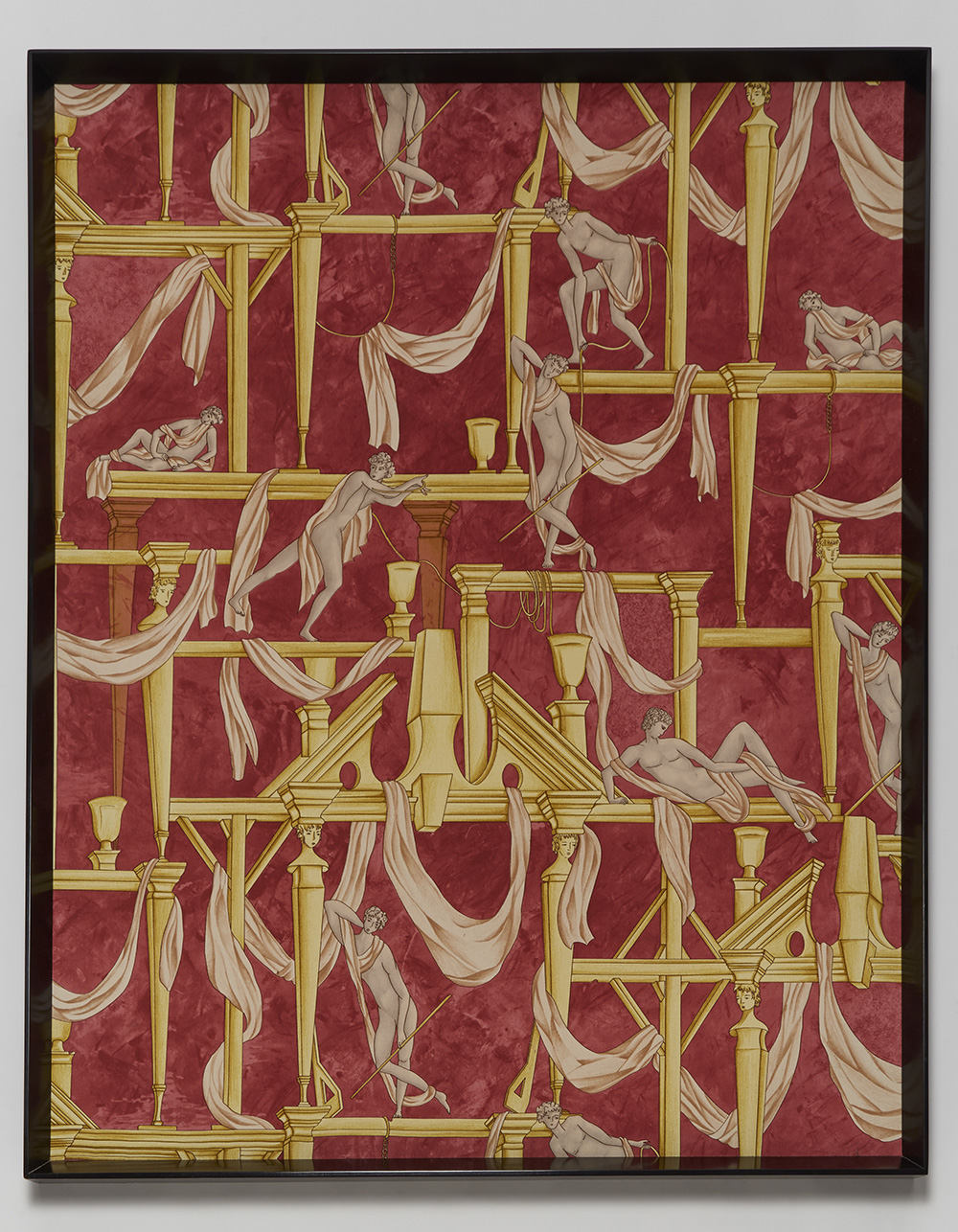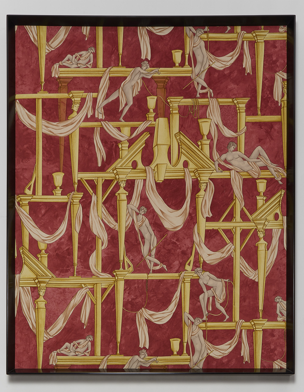 "Casa degli Efebi"Coppia di tessuti in cornice, drappi dal disegno di Gio...