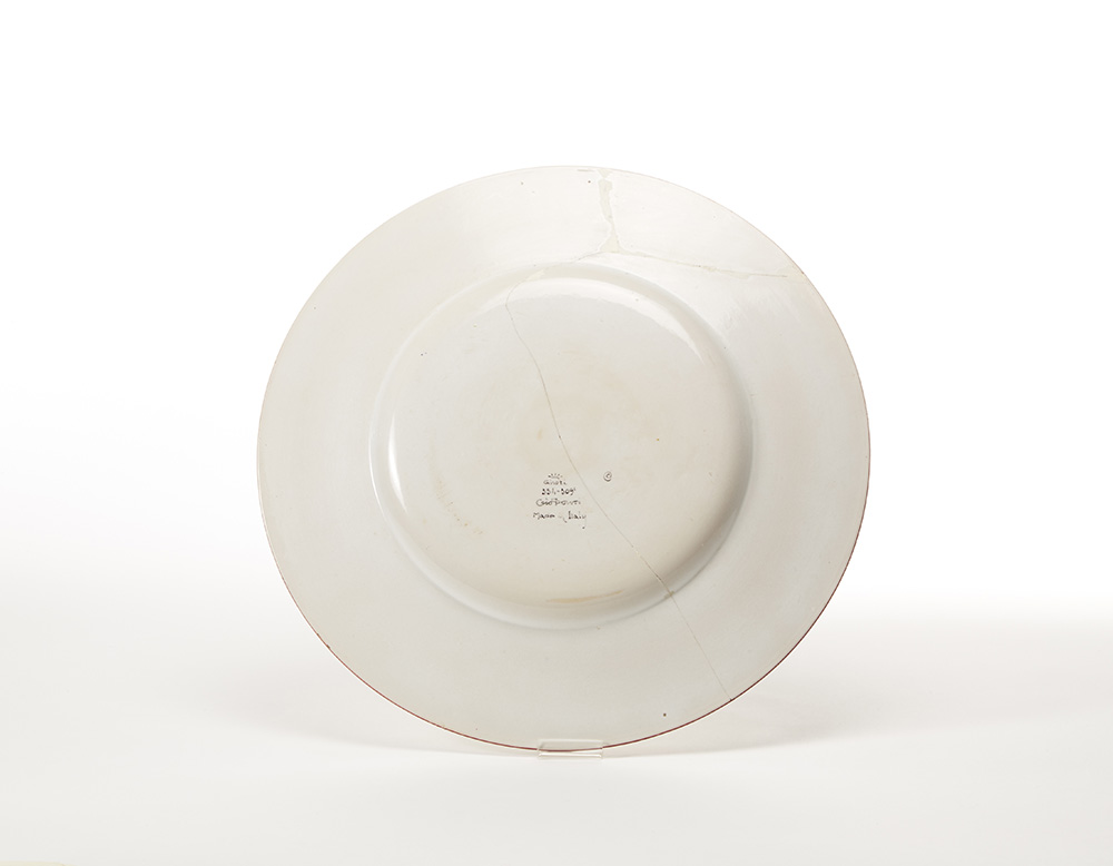 Piatto in ceramica smaltata in policromia sotto vetrina della serie "Le mie donne". Manifattura Richard - Ginori, Milano, 1923-1924. Iscritto in nero a mano sotto la base "Ginori" con il simbolo grafico della corona, i numerali "334-309E", la firma "Giò Ponti" e "Made in Italy". (d cm 49,5) (restauri)