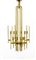 Lampadario in ottone satinato a dodici luci. Voghera, anni '70'/80. (h cm 100; d cm 50) (lievi difetti)