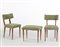 Two chairs and a footrest with solid mahogany structure and green fabric covering. Brass tips. Italy, 1940s. (Chairs cm 52.5x80x52; Pouf 60x47x41) (defects)