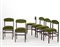 Sei sedie in teak massello con seduta e schienale rivestita in velluto verde. Italia, anni '70. (cm 43x81x45) (lievi difetti)