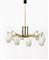 Lampada da sospensione in metallo e ottone a otto luci con diffusori in vetro satinato opalino. Italia, anni '60. (h cm 88; d cm 88) (lievi difetti e restauri)
