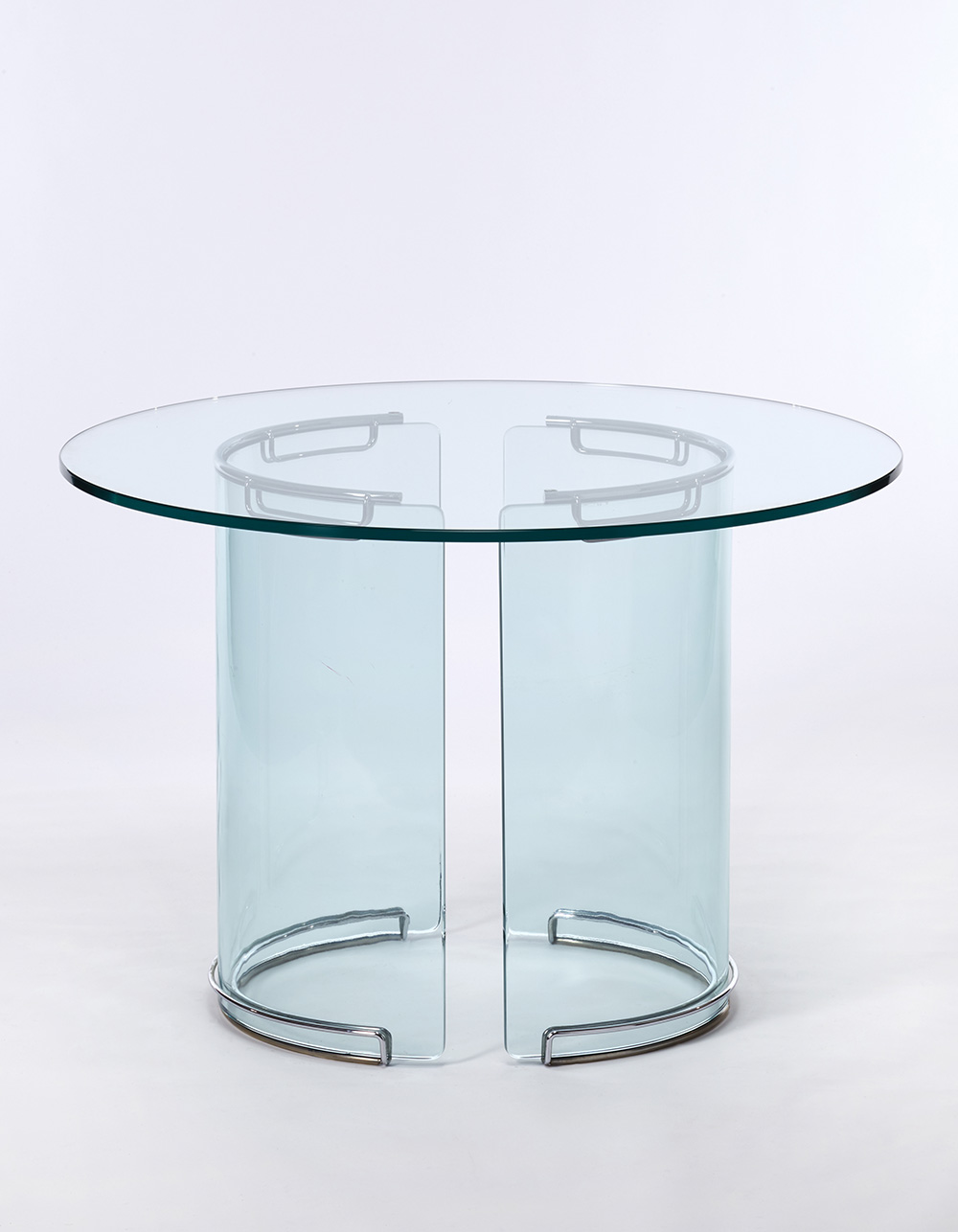 Tavolo in cristallo e tubolare metallico cromato. Italia, anni '70. (h cm 71,5; d cm 105) (lievi difetti e piccole mancanze)