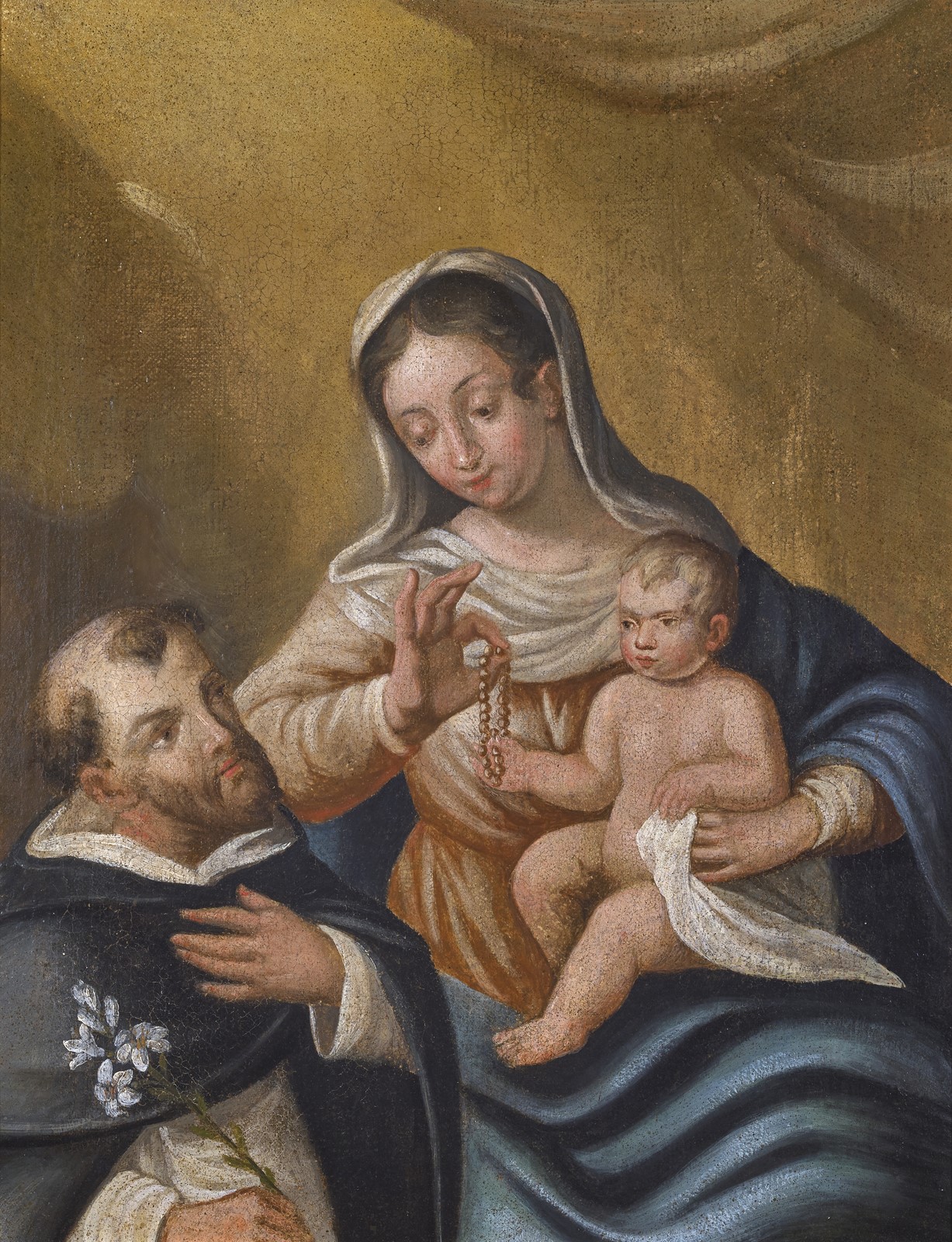 ARTISTA DEL XVIII SECOLO Madonna con bambino e frate. . Olio su tela . Cm...