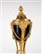 MANIFATTURA FRANCESE DEL XIX SECOLO Coppia di coppette in bronzo dorato e vetro blu. . Cm 9,00 x 25,00.
