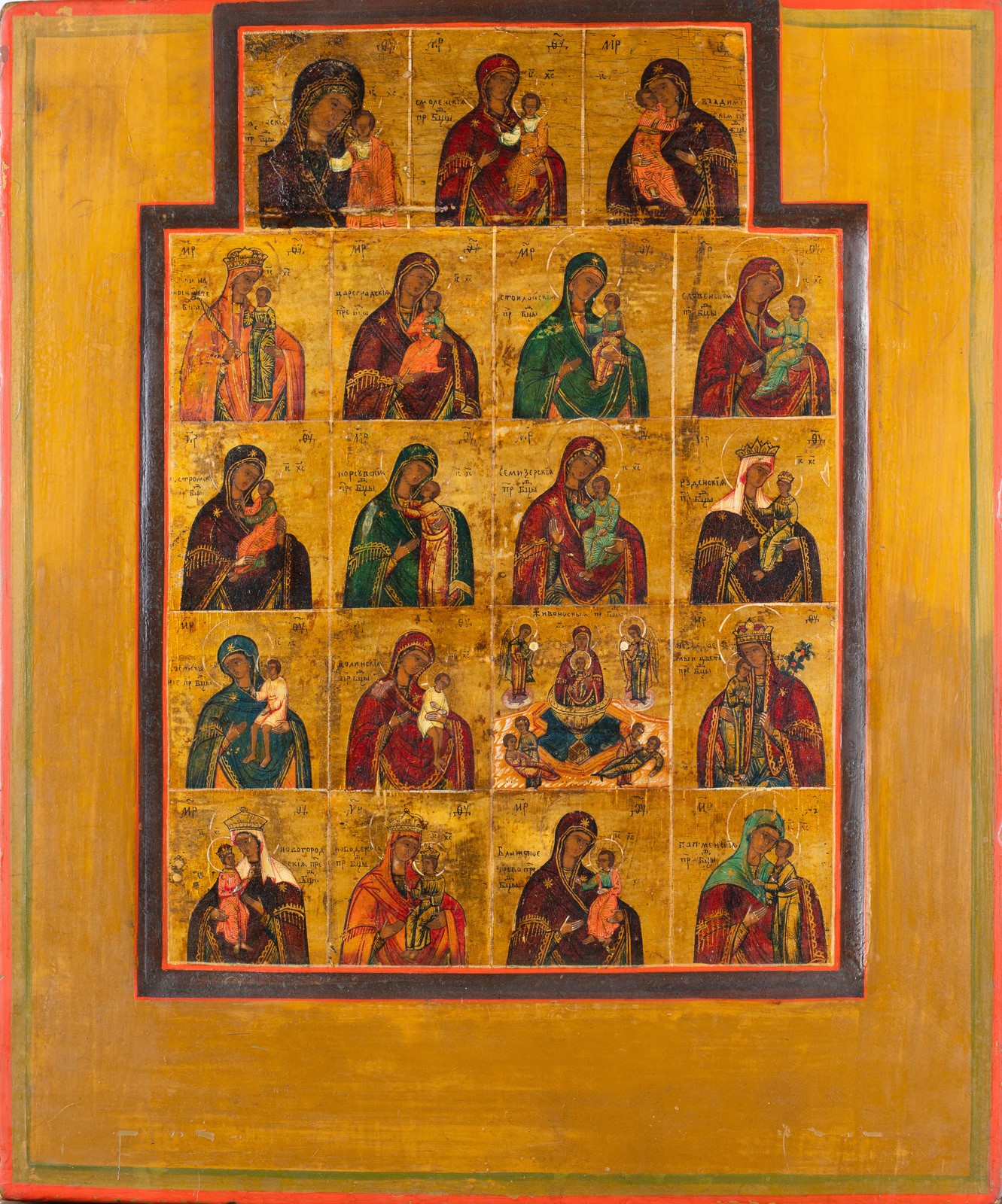 ICONA RUSSA DEL XIX SECOLO Raffigurante immagini della Vergine. Tempera su...