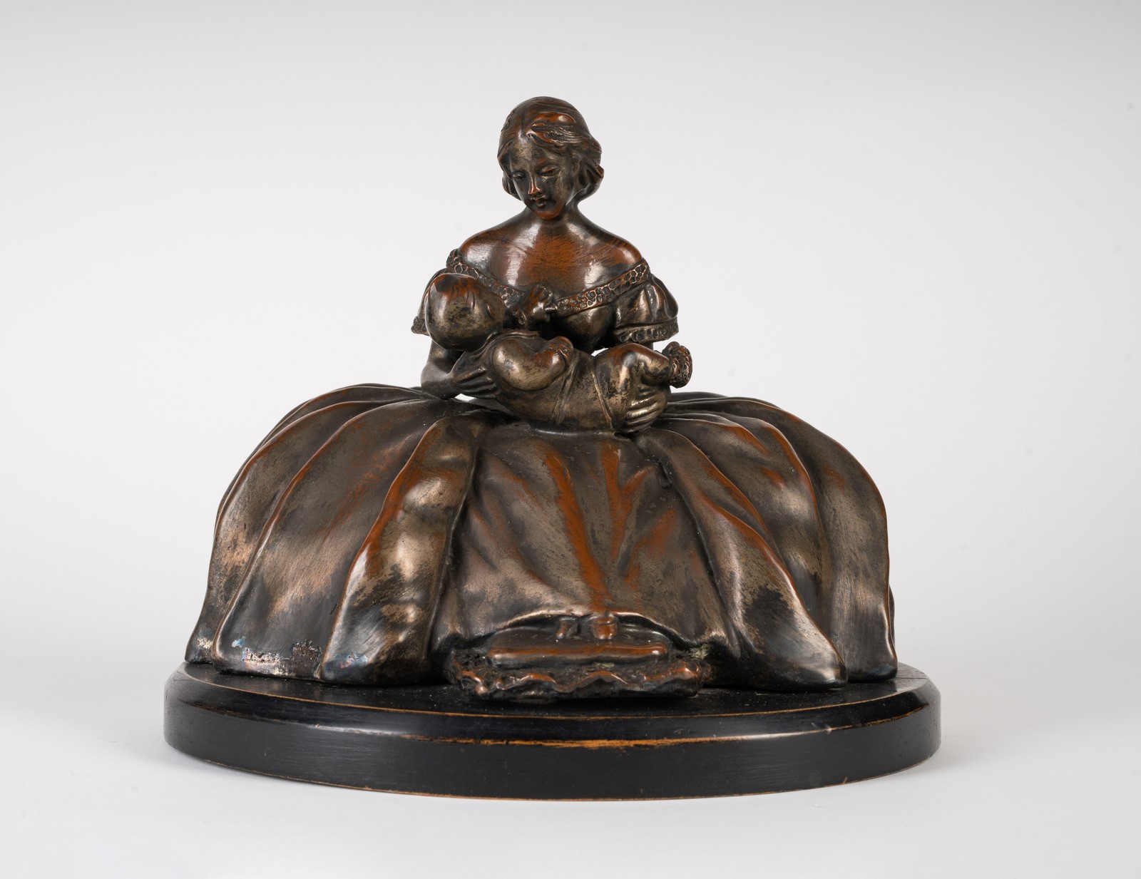 MANIFATTURA ITALIANA Maternità. bronzo. Cm 25,00 x 24,00 x 23,00. Firmato alla base V. Bertolotti.