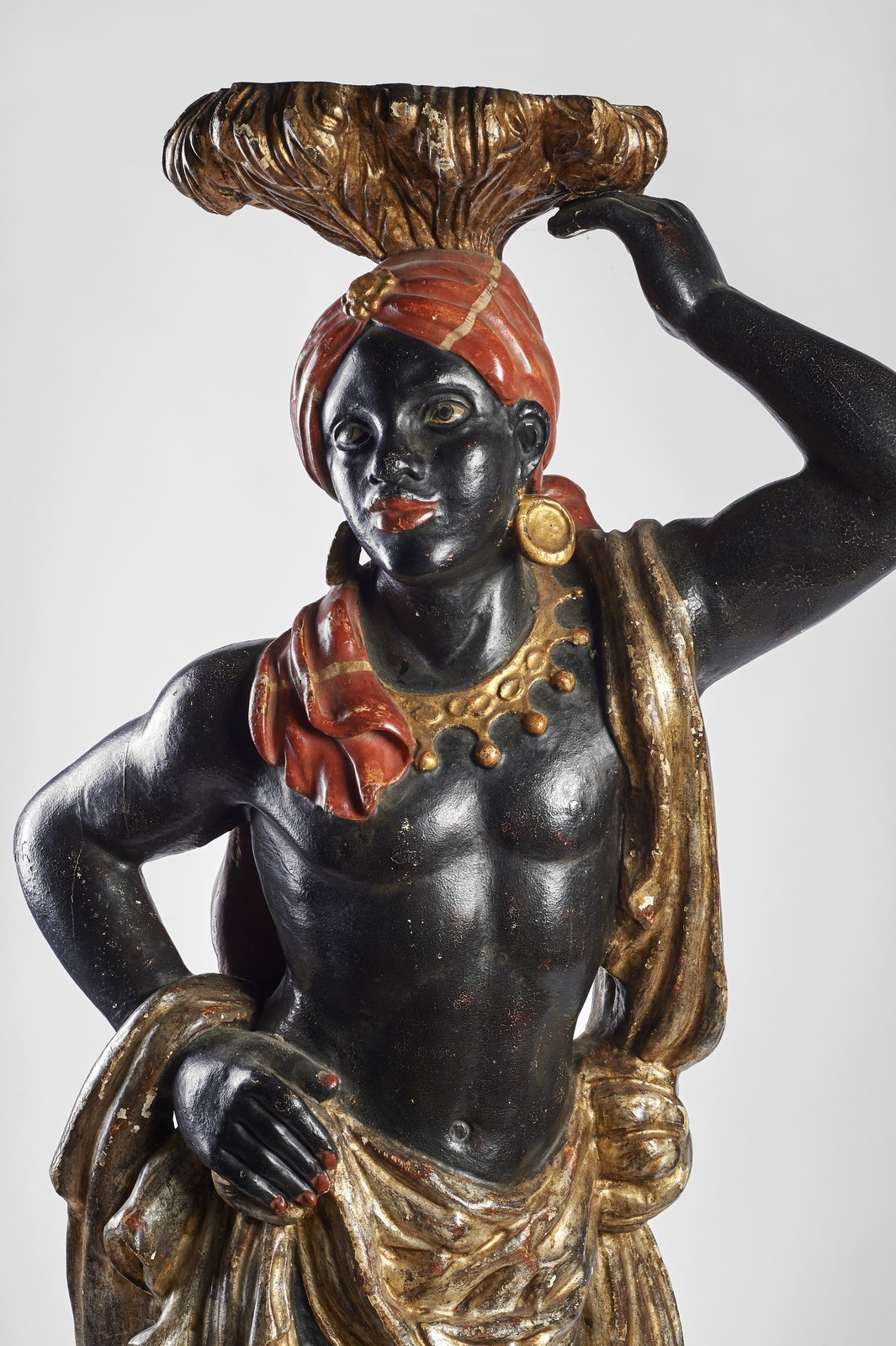 MANIFATTURA VENEZIANA DEL XVIII SECOLO Moretto in legno policromo. . . Cm 135,00. Difetti.