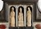 MANIFATTURA VENETA DEL XVII SECOLO Gruppo di 13 personaggi biblici in osso alla maniera della bottega Degli Embriachi. . . Cm 36,00 x 65,00. In cornice in legno ebanizzato decorata con pietre dure e fasce in osso. Difetti.