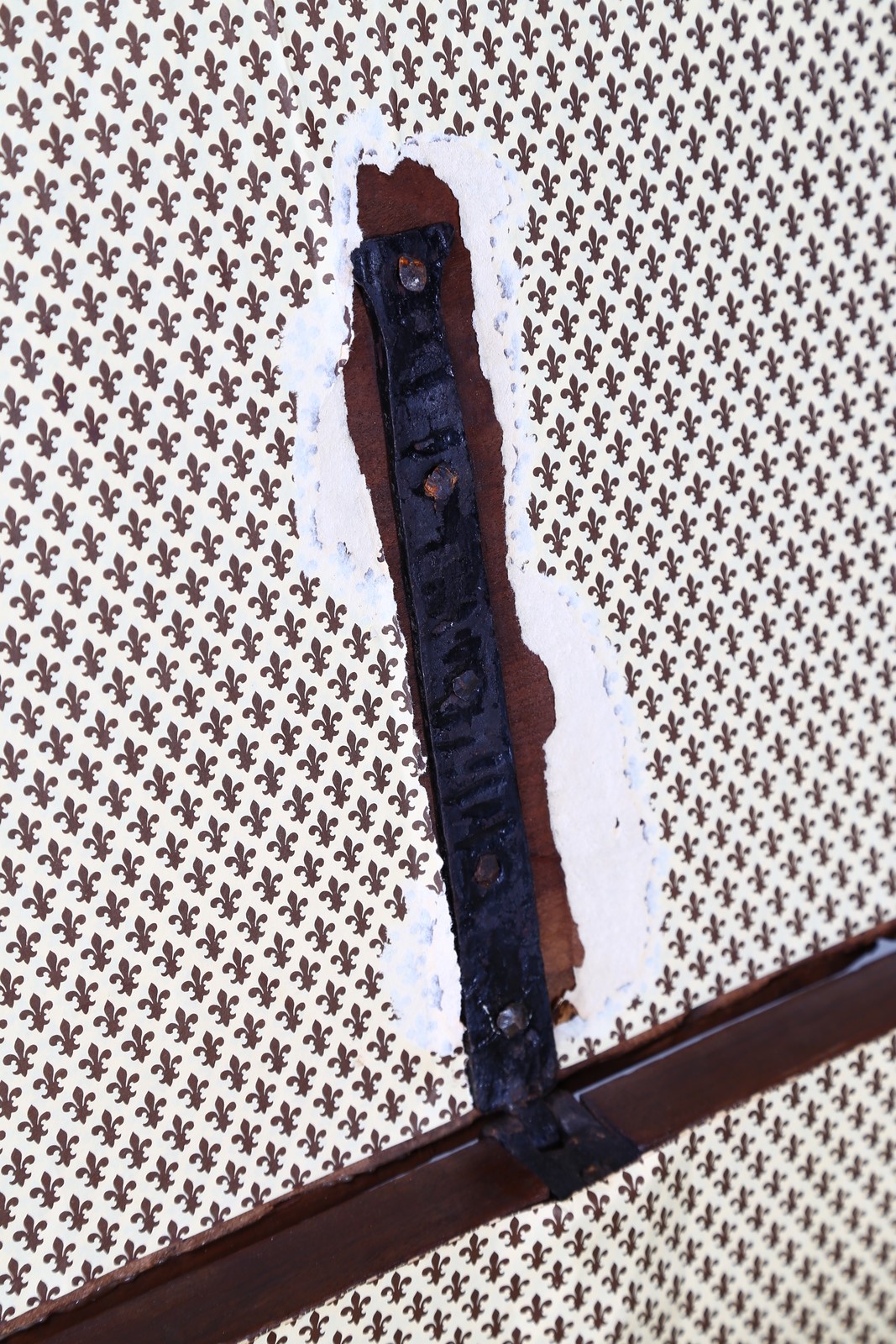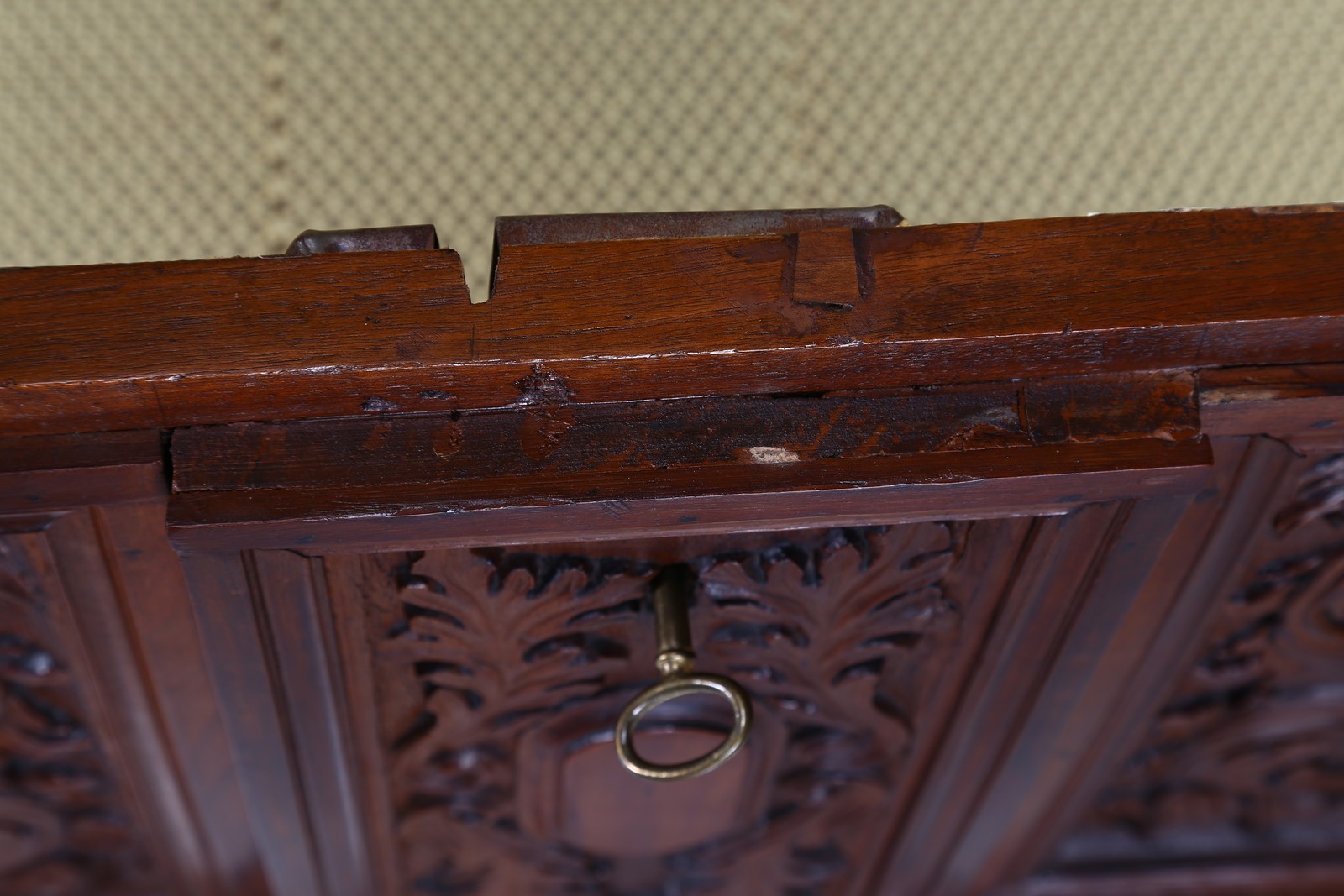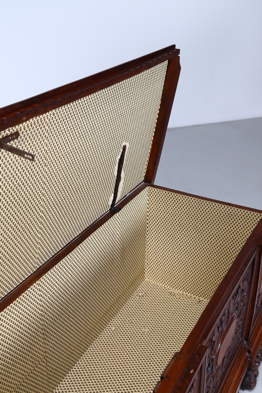 MANIFATTURA VENETA DEL XVII SECOLO Cassapanca in legno di noce finemente...