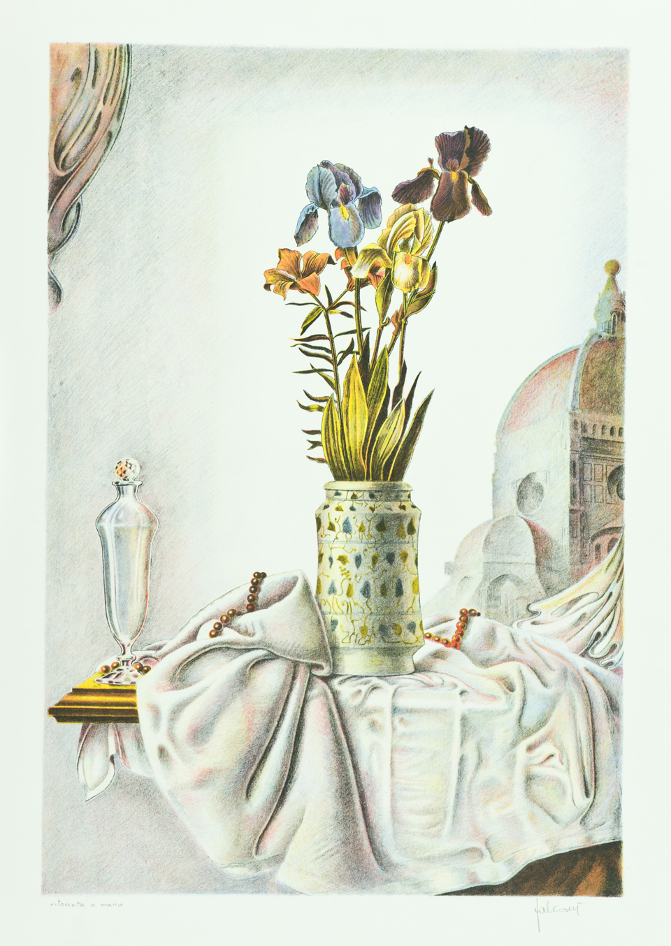 Walter Falconi Lotto unico di due Opere - "Natura morta", Litografia su carta, cm. 50x70, es. P.A., firmato in basso a destra; - "Natura morta", Litografia ritoccata a mano su carta, cm. 70x50, firmato in basso a destra.