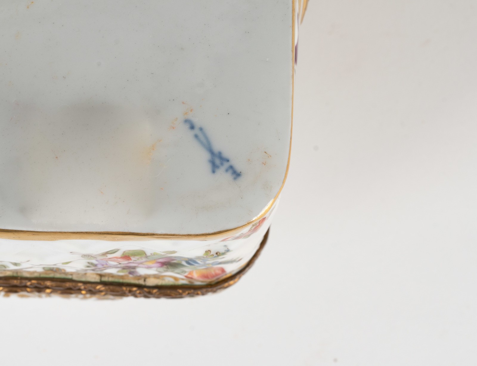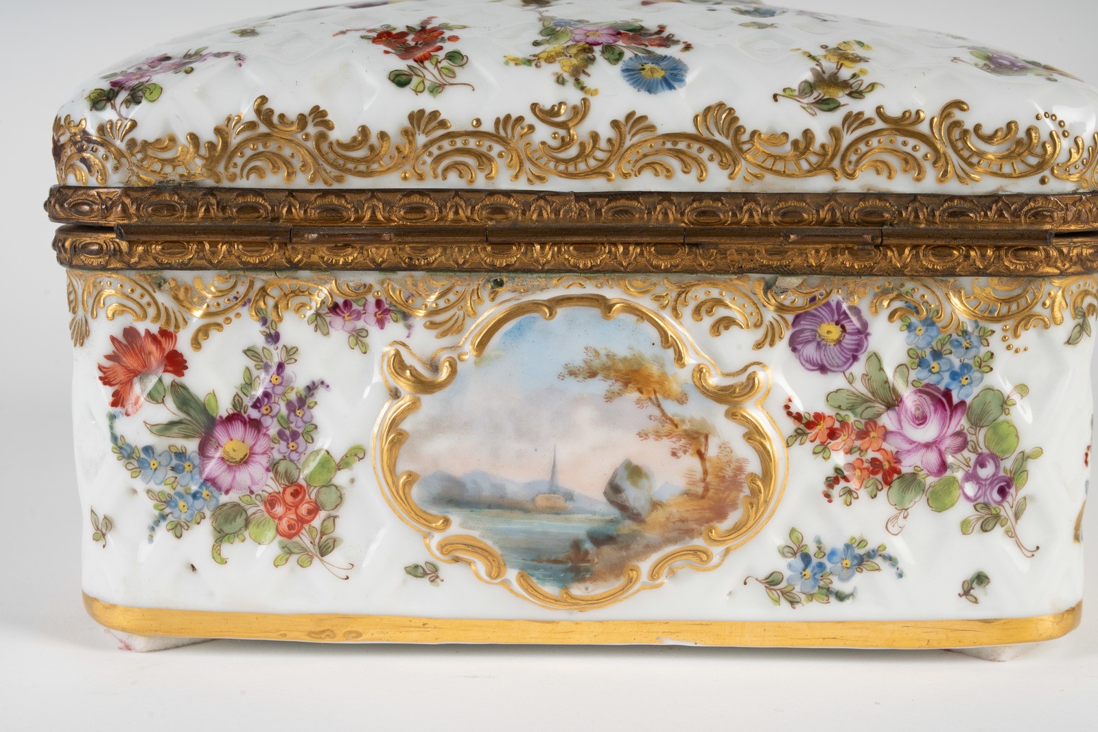 MANIFATTURA DI MEISSEN DEL XIX SECOLO Cofanetto in porcellana dipinta a fiori...