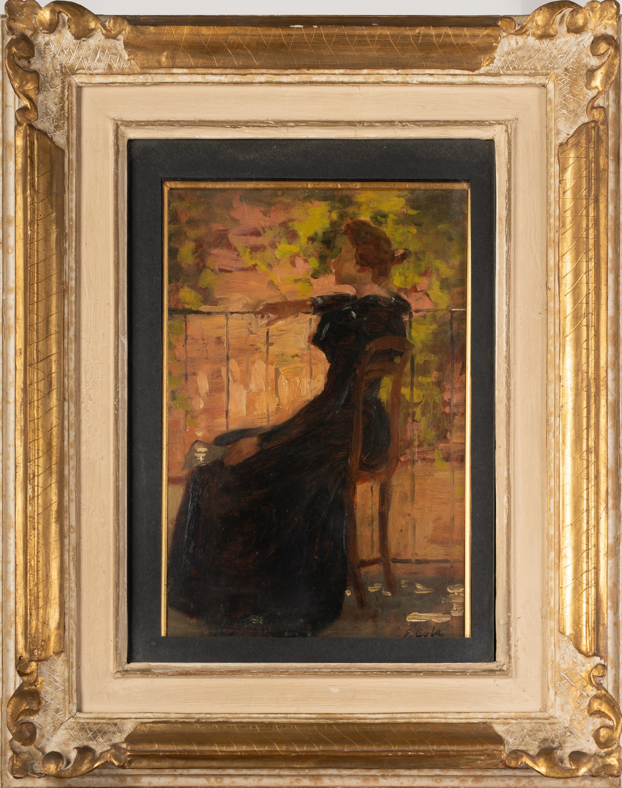 GOLA EMILIO (1851 - 1923) Ritratto di donna al balcone. . Olio su cartone...