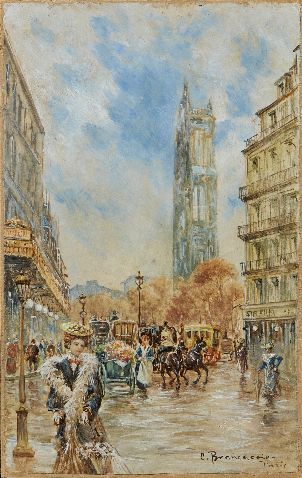 BRANCACCIO CARLO (1861 - 1920) Via di Parigi. olio su carta applicata su...