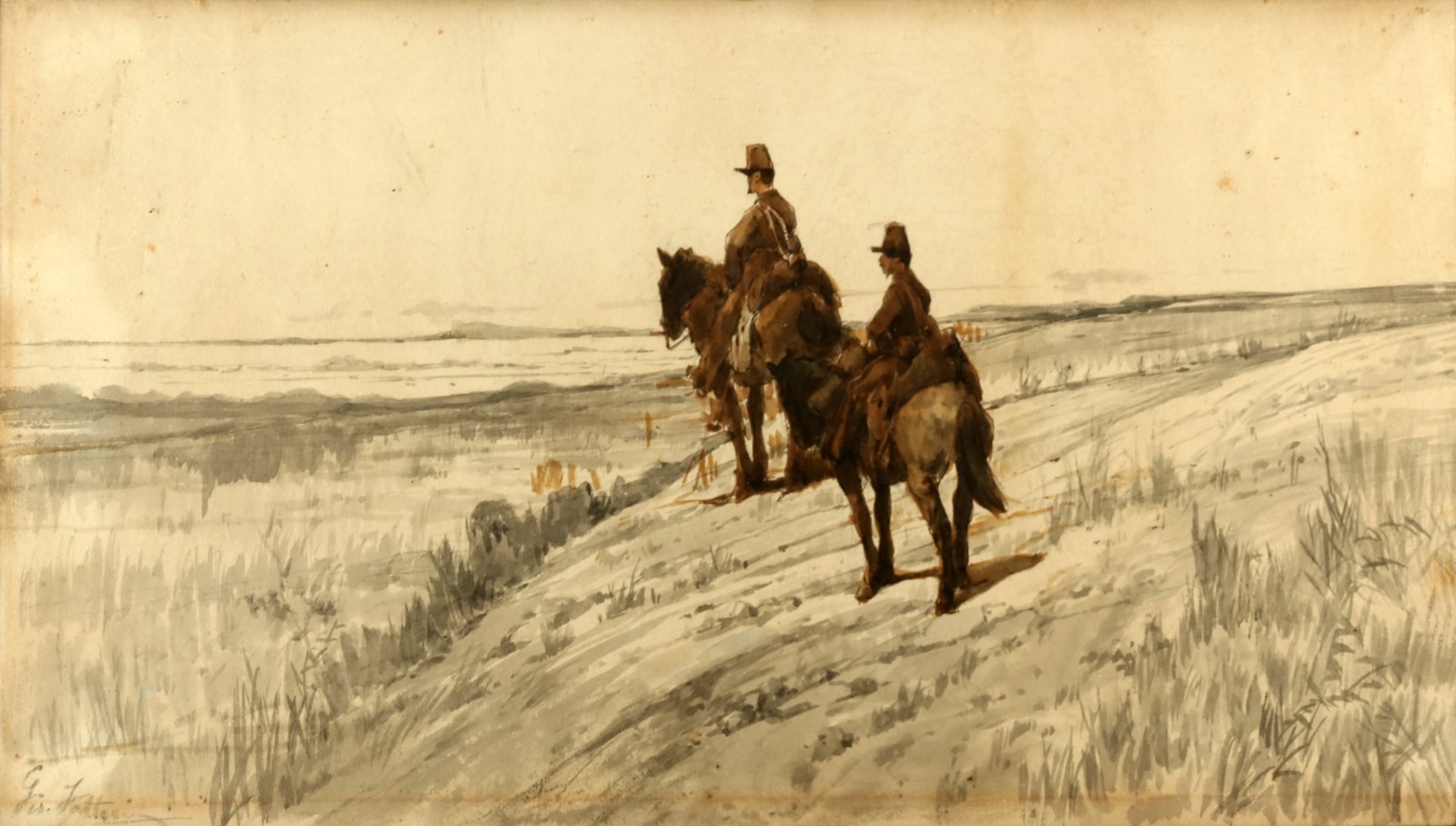 FATTORI GIOVANNI (1825 - 1908) Sentinelle in vedetta. Acquerello su carta. Cm 31,80 x 18,50. Firmato in basso a sinistra.