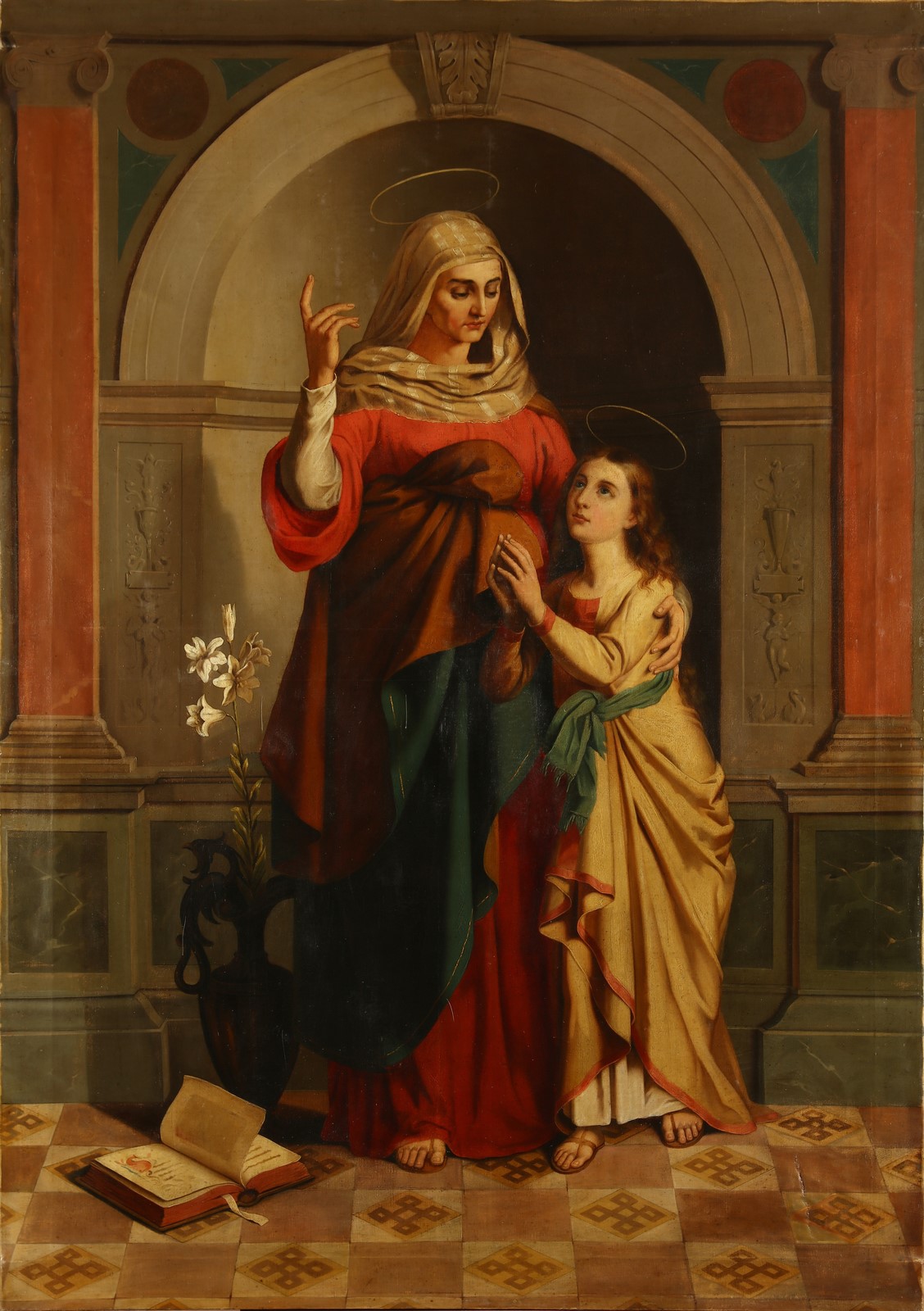 ANONIMO DEL XIX SECOLO Educazione di Maria. . Olio su tela . Cm 90,00 x 130,00.