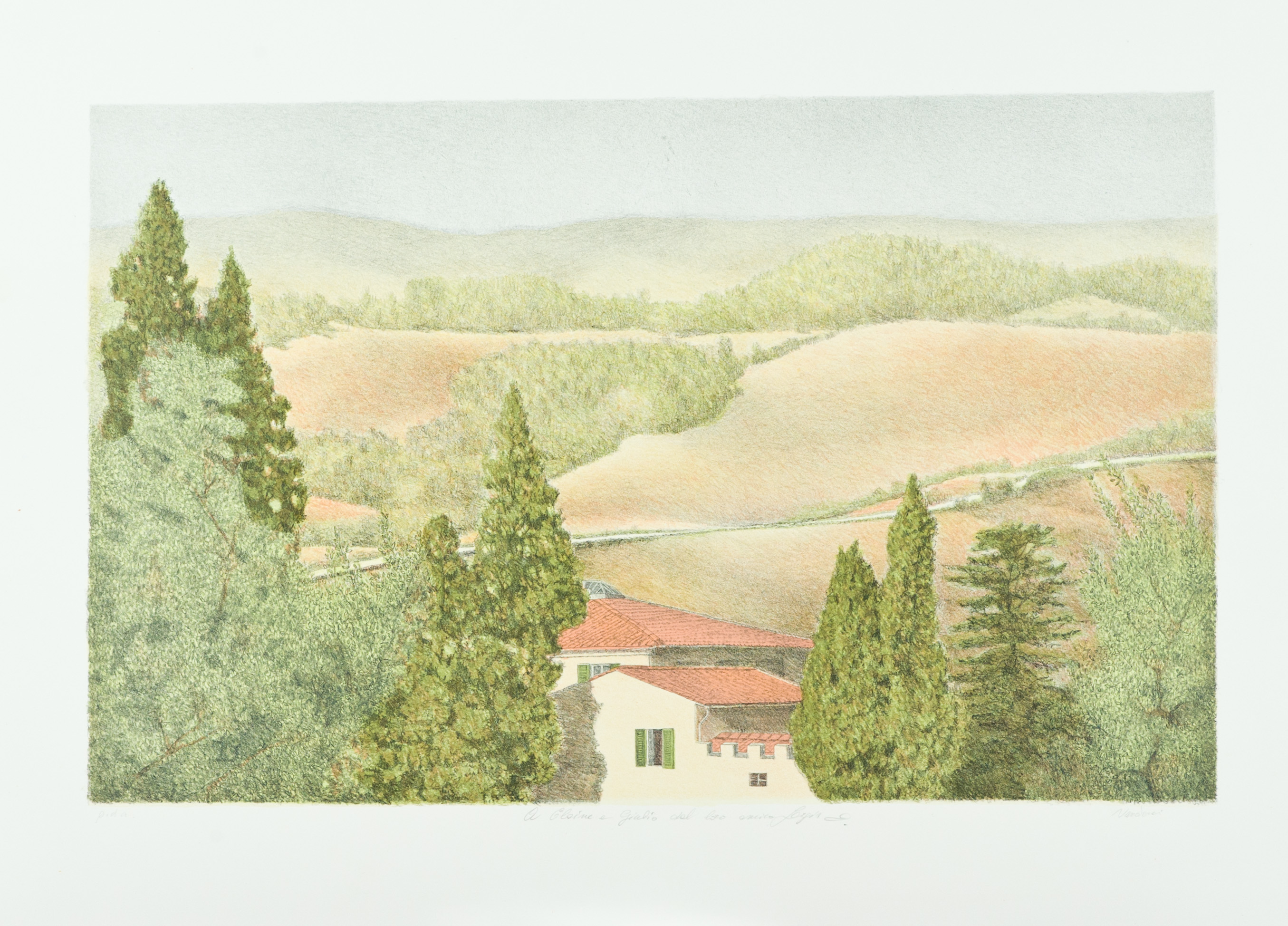 Sergio Nardoni Lotto unico di due Opere - "Veduta", Litografia su carta, cm. 70x50, es. A/Z, firma in basso a destra, tiratura in basso a sinistra, dedica a persona in basso al centro; - "Paesaggio", Litografia su carta, cm. 50x70, es. P.A., firma in basso a destra, dedica a persona in basso al centro.