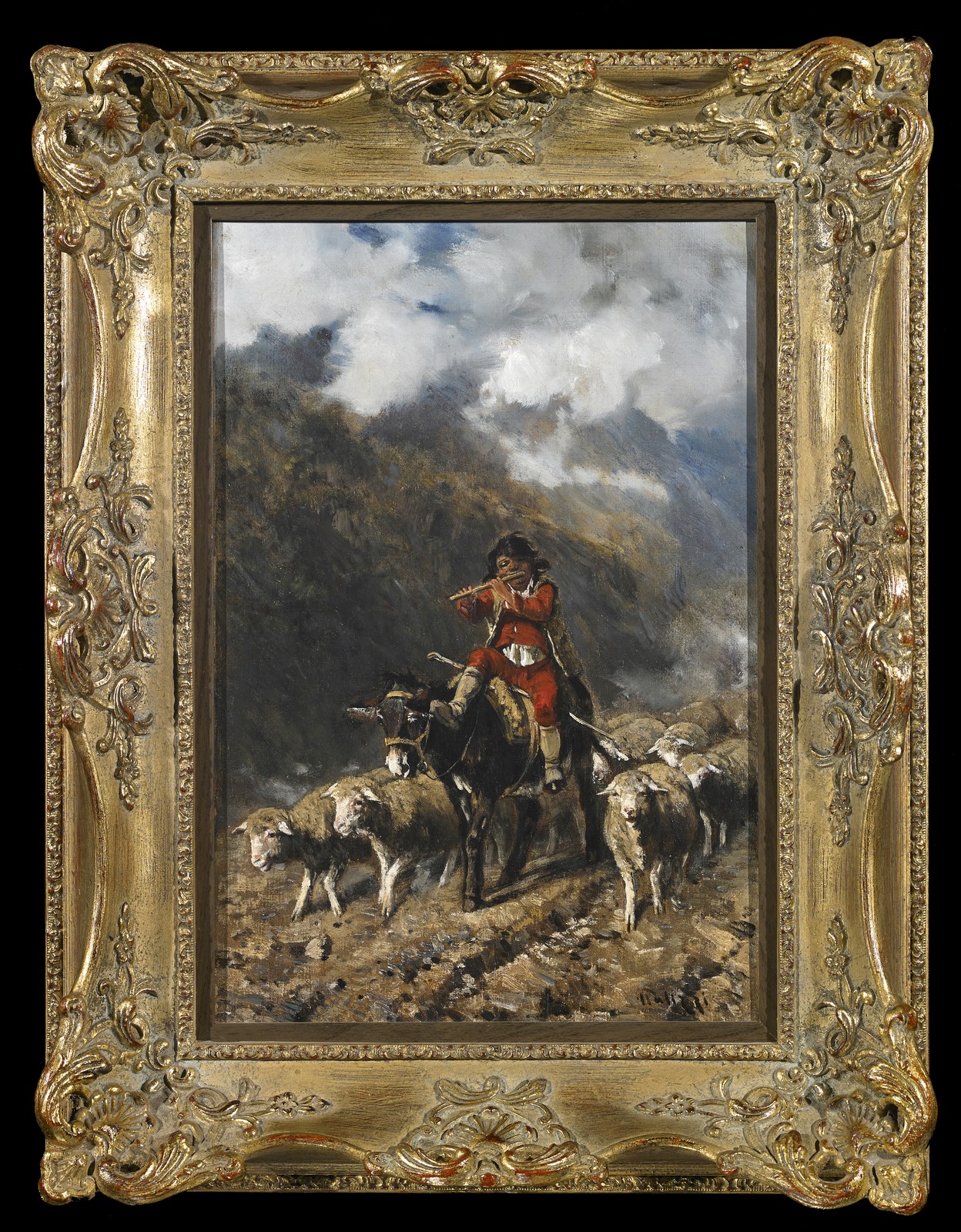 PALIZZI FILIPPO (1818 - 1899) Pastorello con armenti. . Olio su tela . Cm 22,50 x 33,50. Firmato in basso a destra.