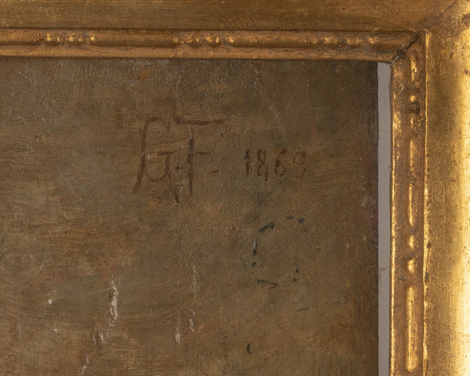 FAVRETTO GIACOMO (1849 - 1887) . Oil on board. Cm 17,00 x 33,00. Cornice presente