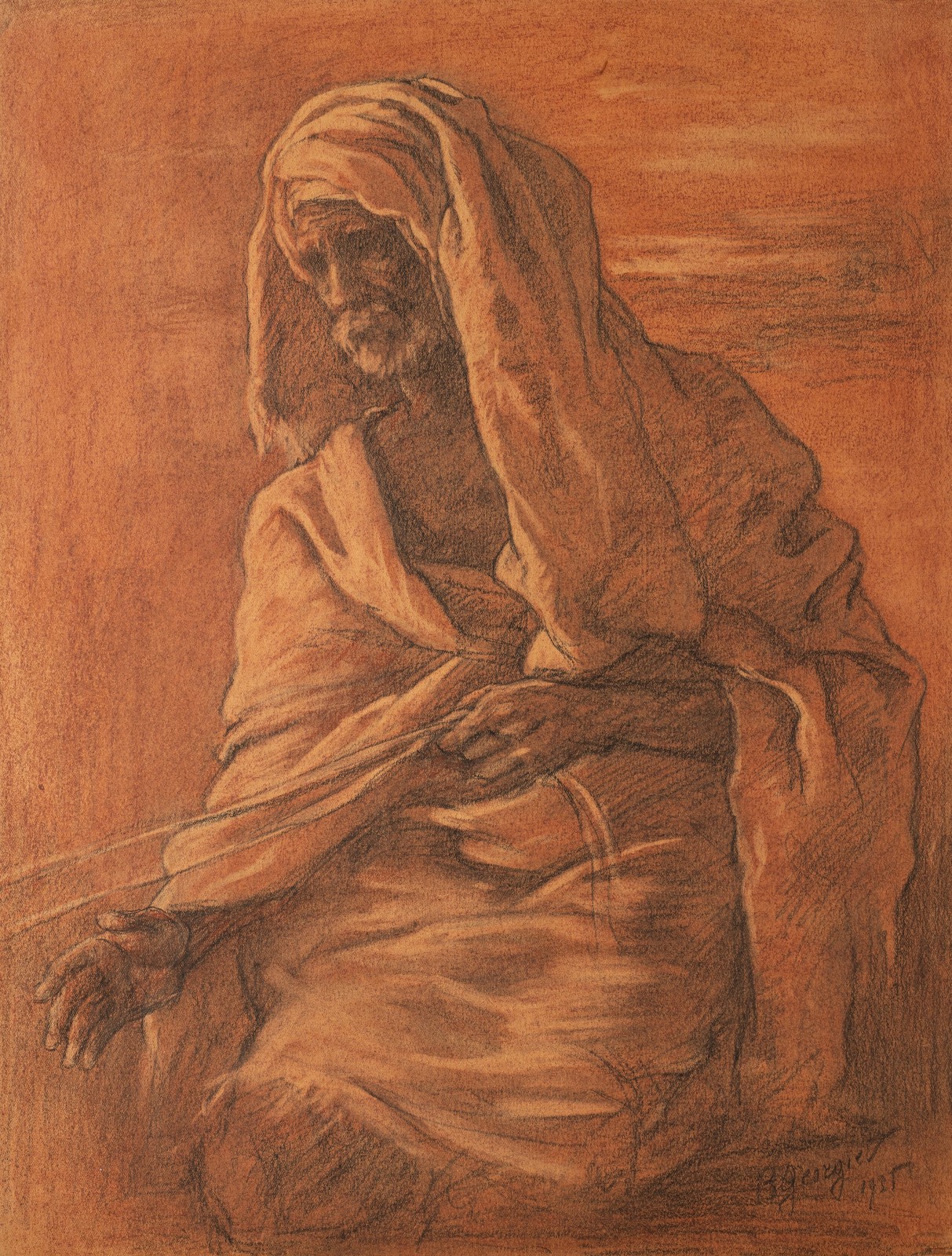 GEORGIEV BORIS (1888 - 1962) Ritratto di Paria. . Tecnica mista su carta. Cm 34,00 x 45,50. Firmato in basso a destra e datato 1935.
