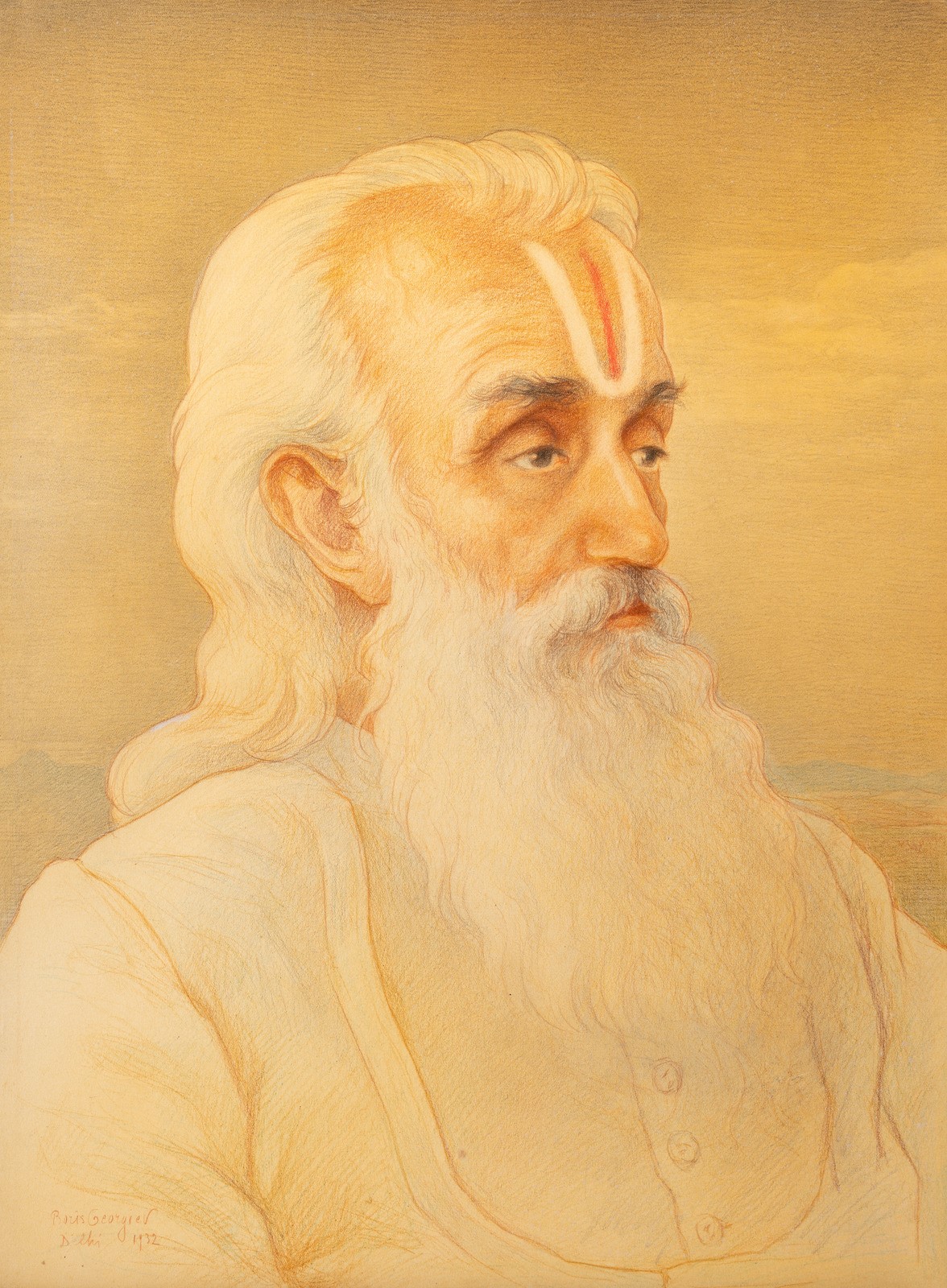 GEORGIEV BORIS (1888 - 1962) Ritratto di Bramino. . Tecnica mista su carta....
