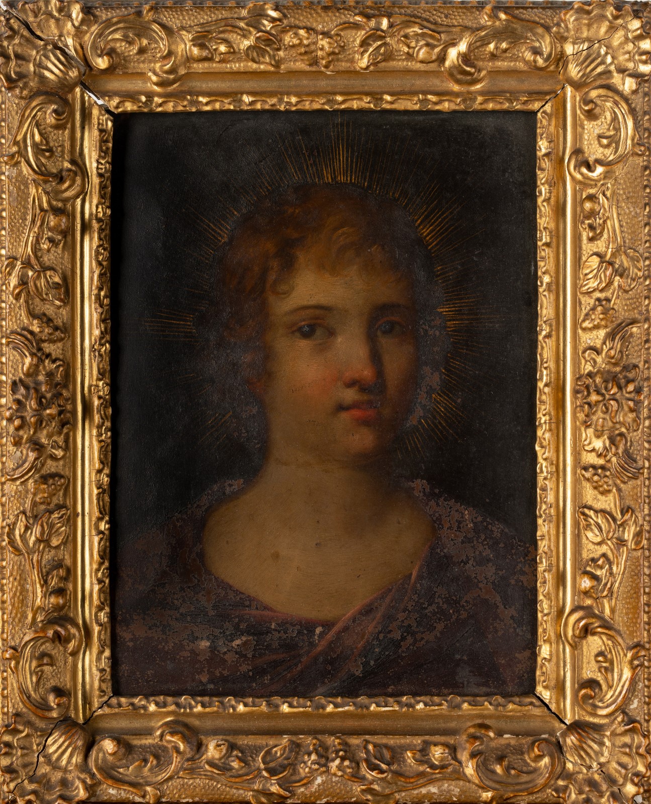 ARTISTA VENETO DEL XVII SECOLO Cristo bambino. . Olio su rame. Cm 16,00 x 22,00. . Cornice presente