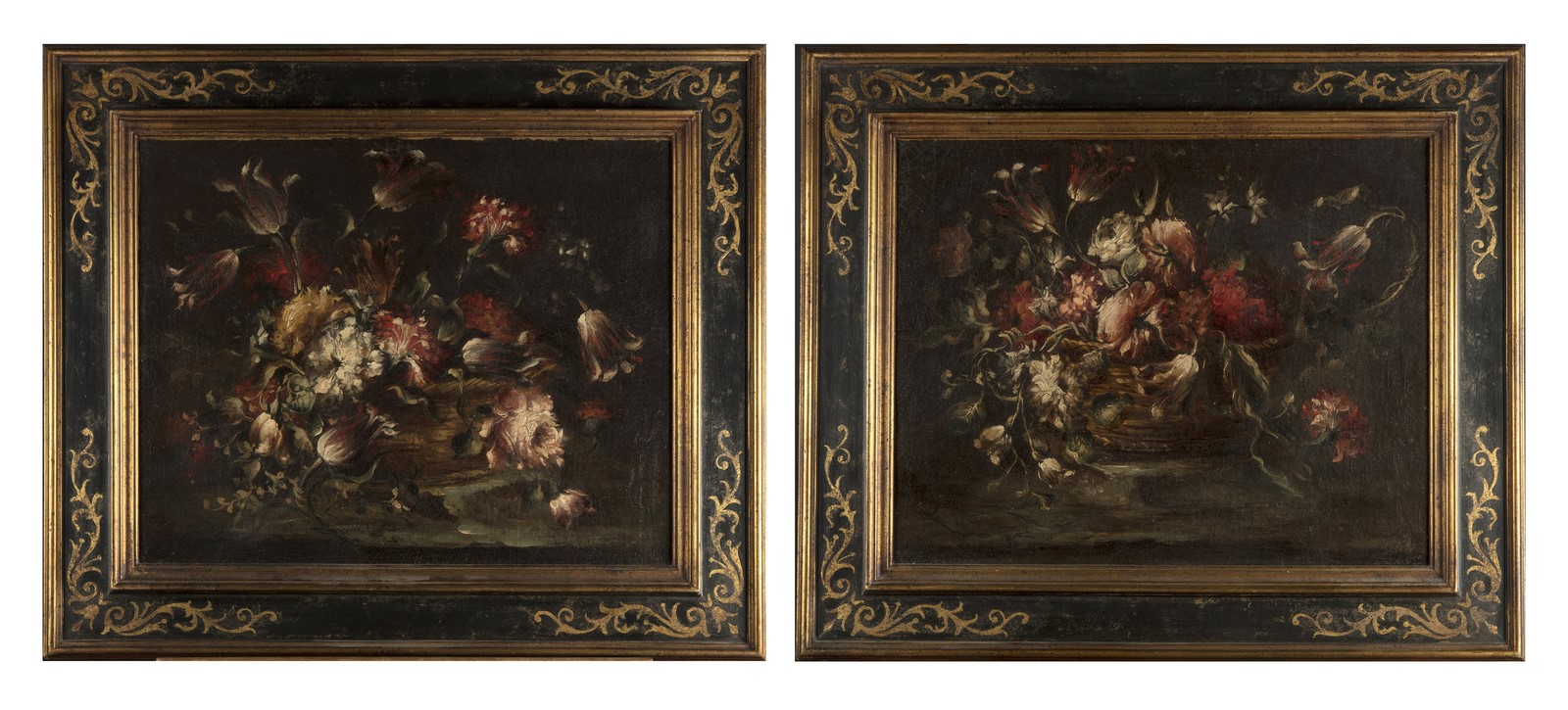 17th CENTURY ARTIST Pair of still life of flowers. Oil on canvas . Cm 55,00 x 44,00. . Cornice presente
