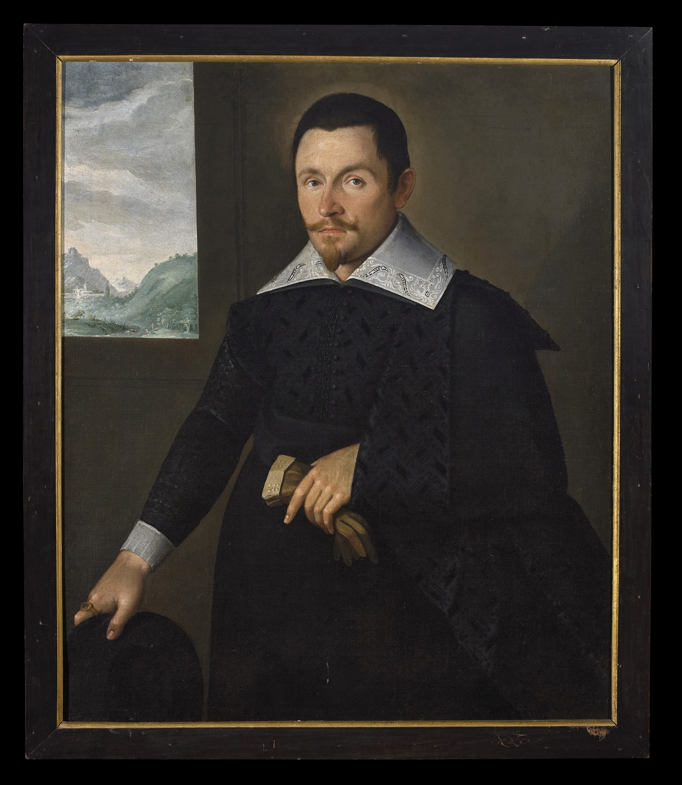 ARTISTA VENETO DEL XVI SECOLO Ritratto di gentiluomo con guanti. Oil on canvas . Cm 98,00 x 82,00. . Cornice presente