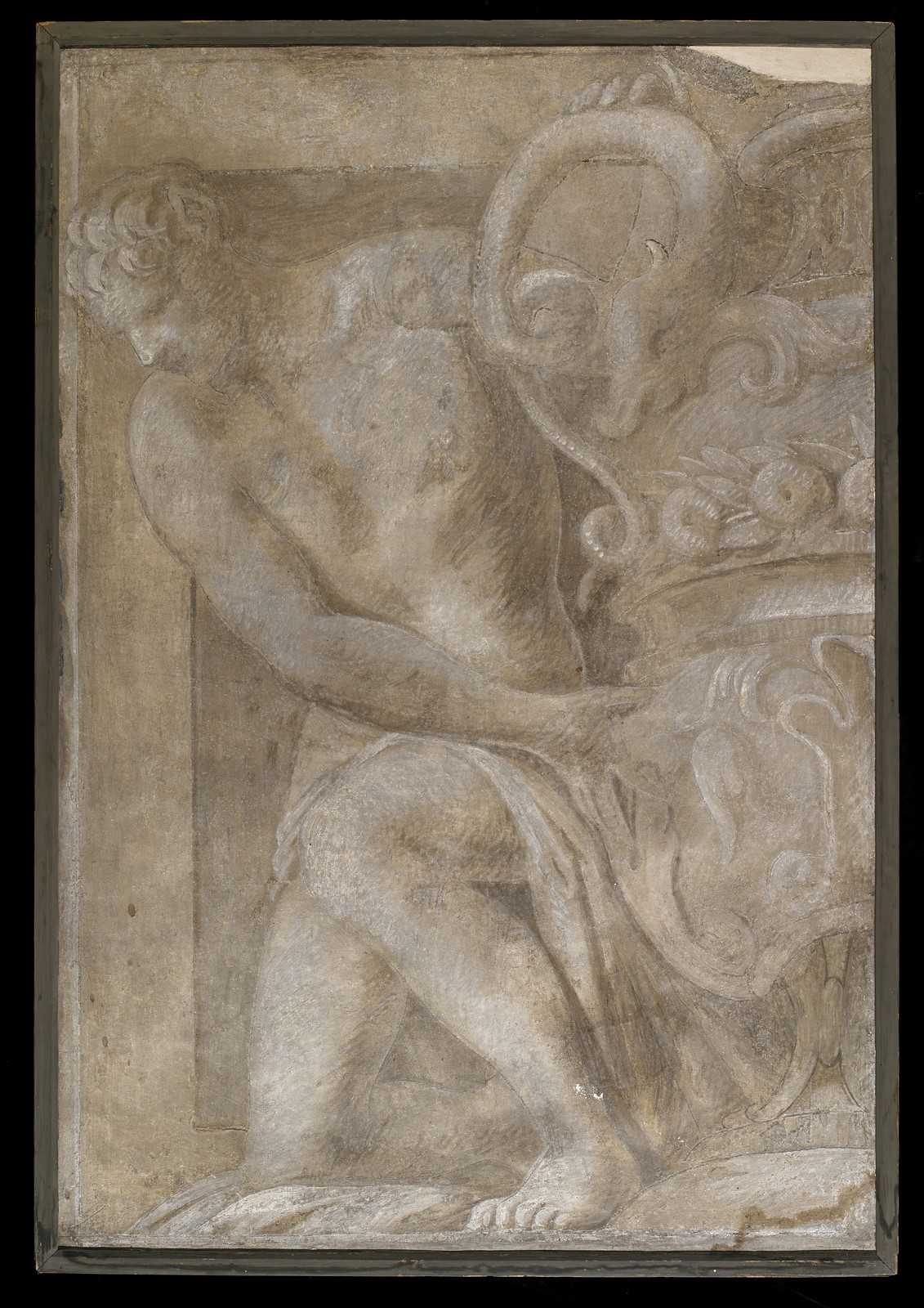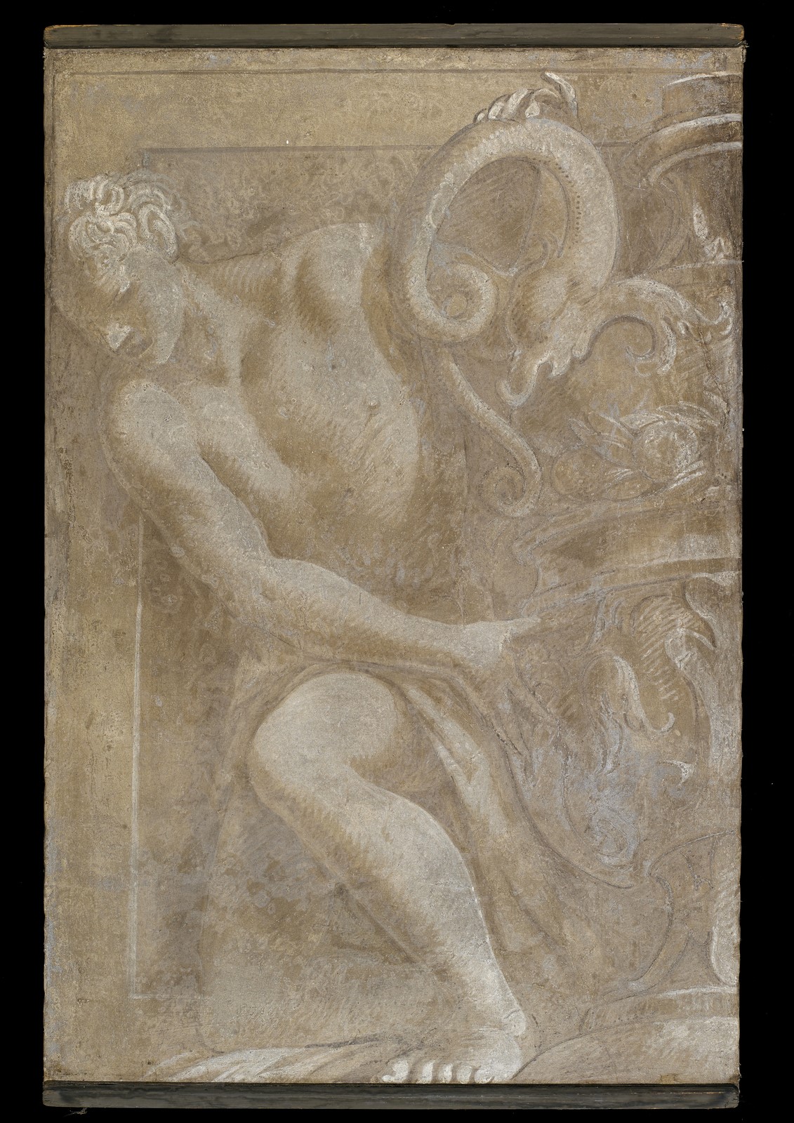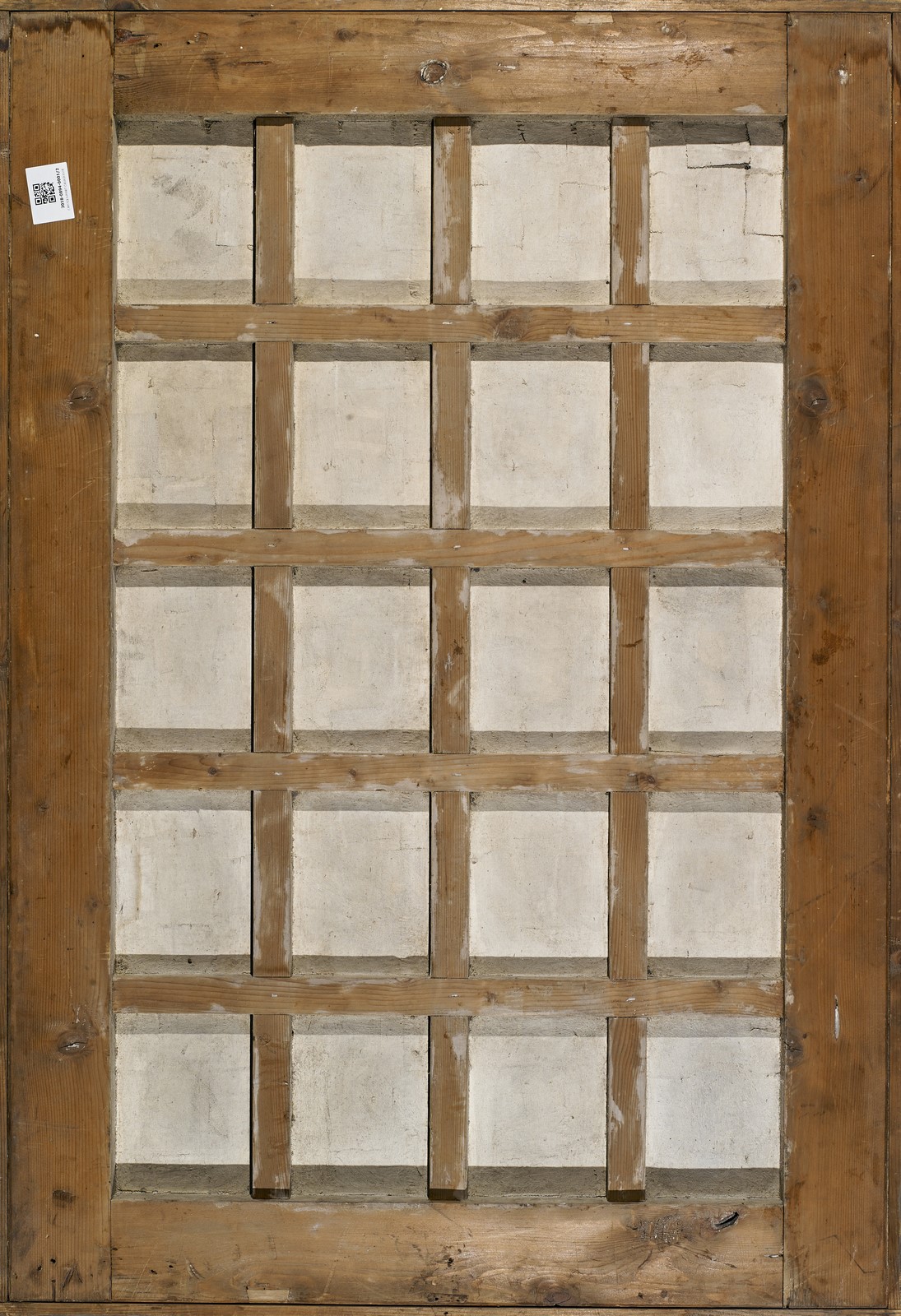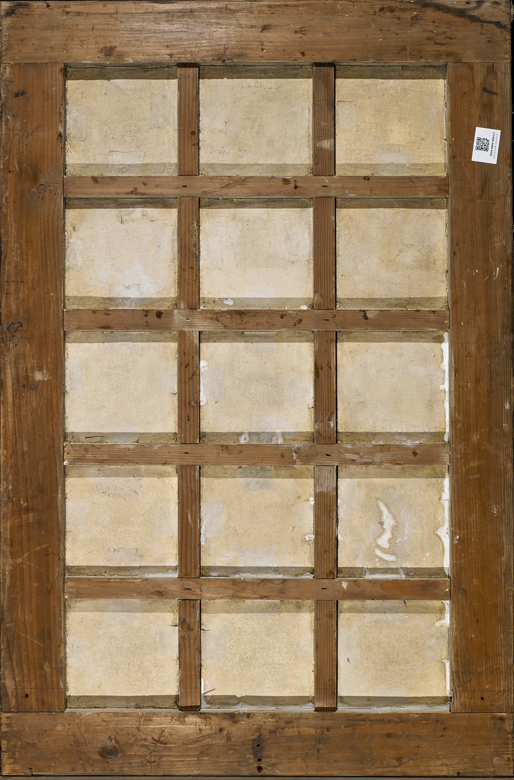 SCUOLA LOMBARDA DEL XVII SECOLO Coppia di figure virili. Strappo su supporto ligneo. Cm 81,00 x 125,00. Riconducibili all'attività di frescante di Giovanni Ghisolfi (1623-1683).