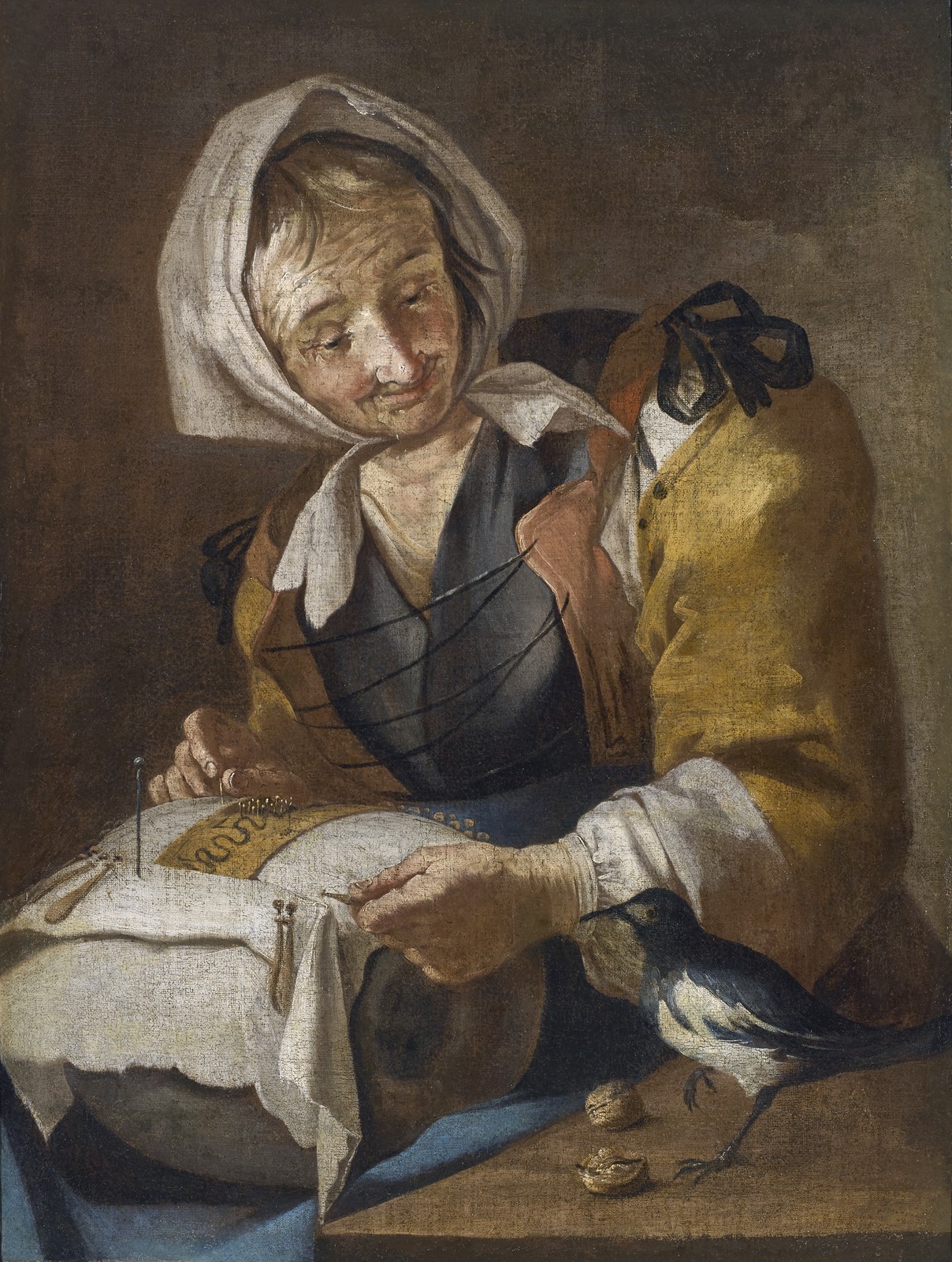 TODESCHINI GIACOMO FRANCESCO DETTO CIPPER (1664 - 1736) Donna al tombolo con...