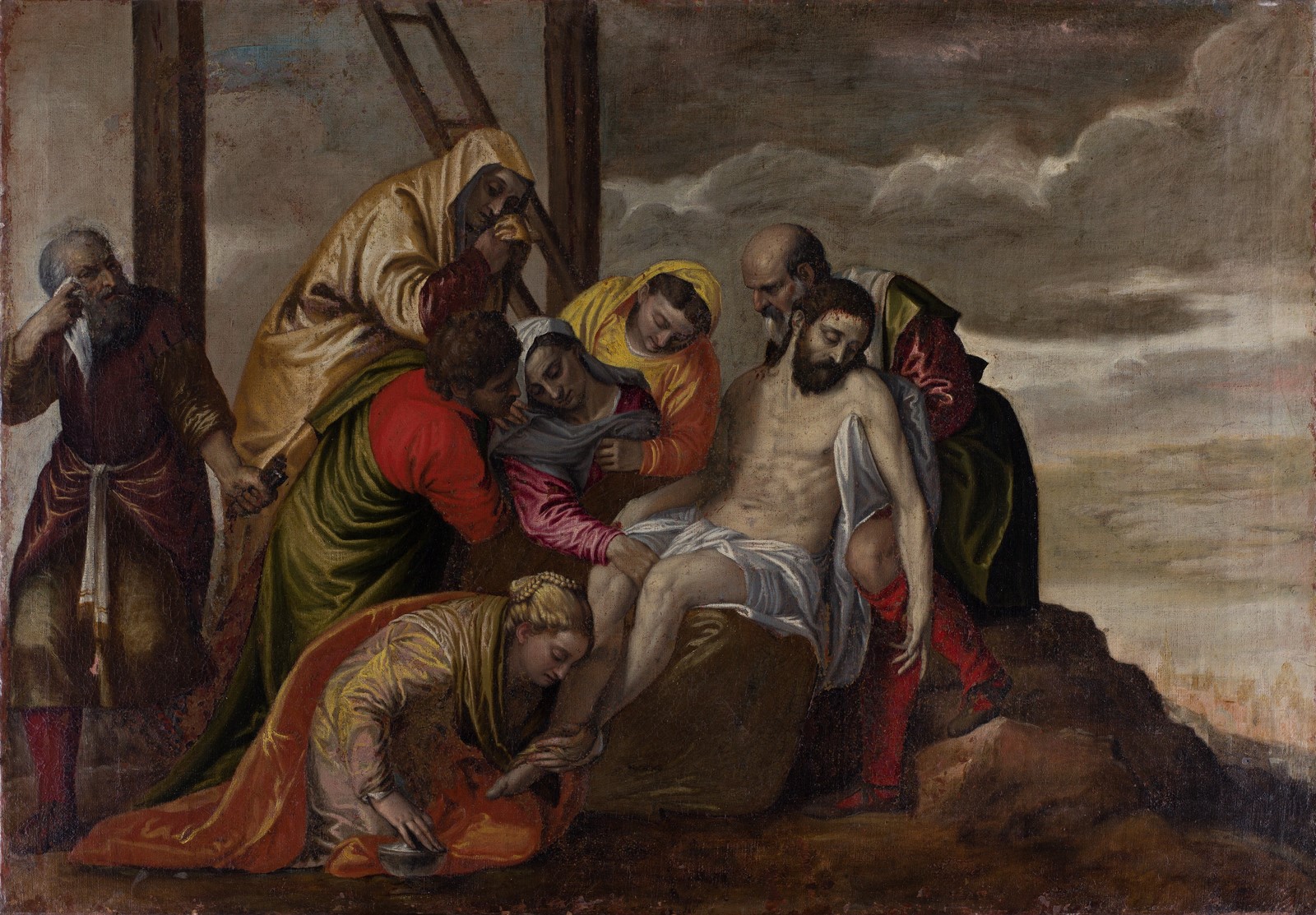CALIARI BENEDETTO (1538 - 1598) Deposizione dalla croce. Oil on canvas . Cm 109,00 x 76,00.