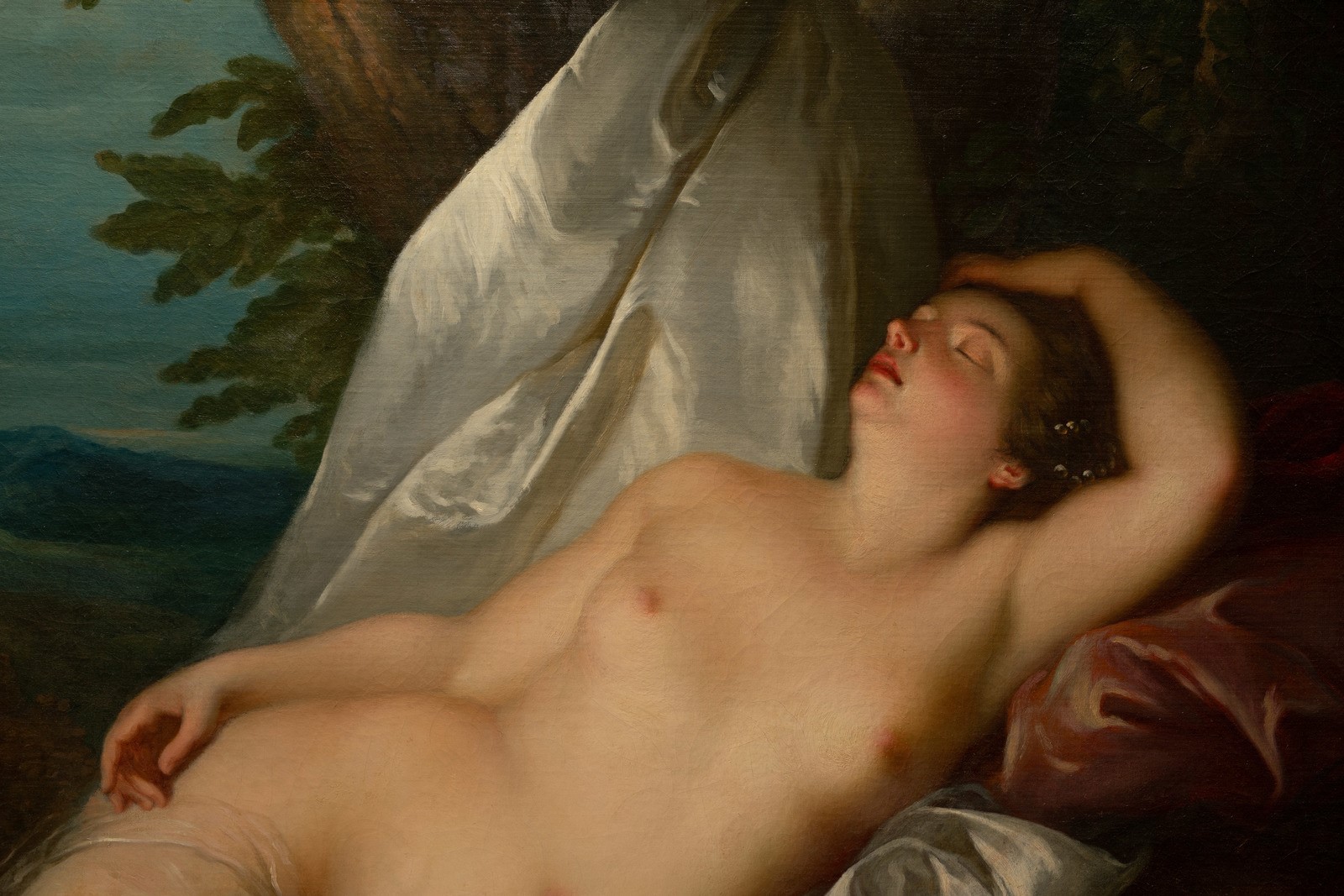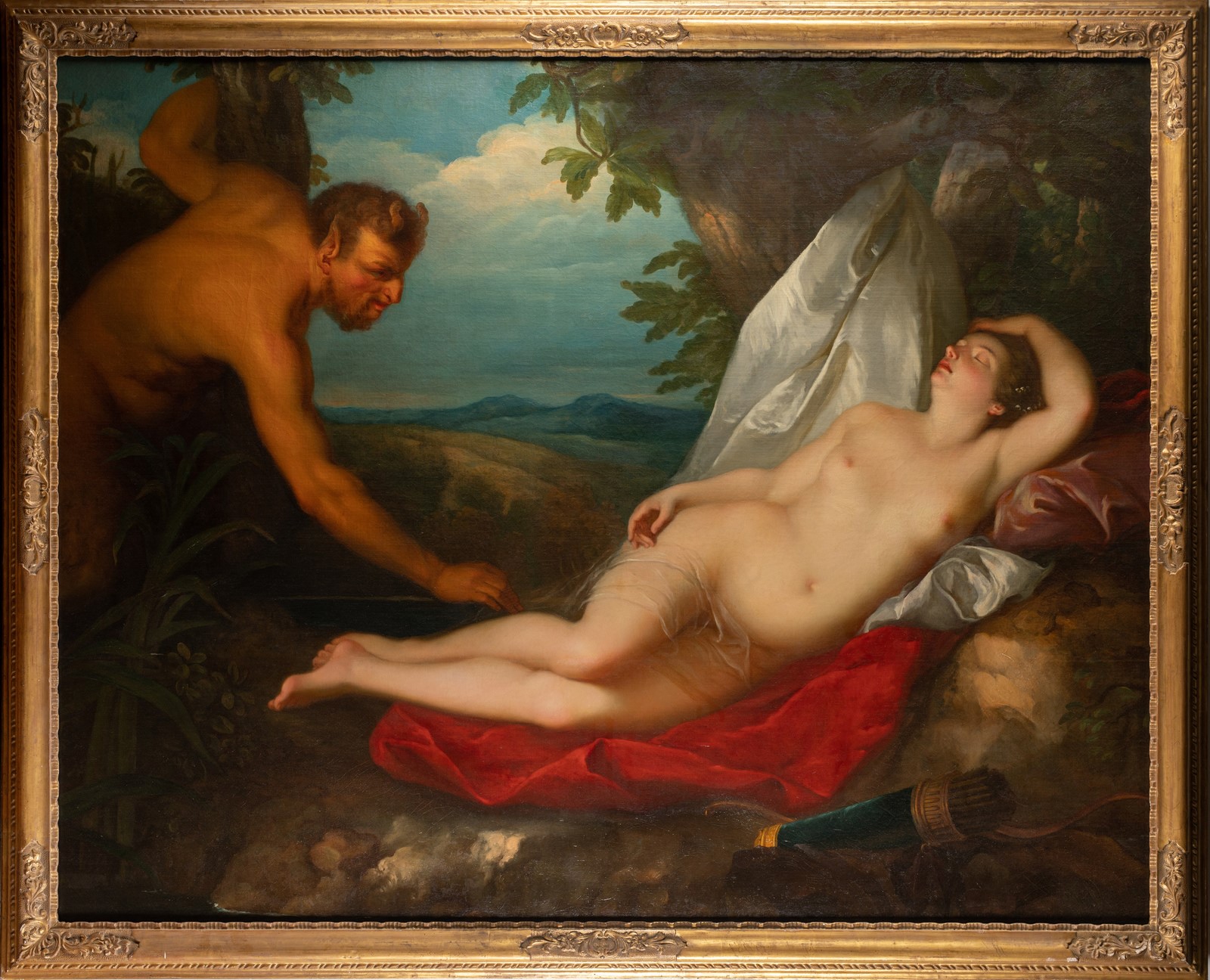 ARTISTA FRANCESE DEL XVIII SECOLO Giove e Antiope. Olio su tela . Cm 200,00 x 160,00.
