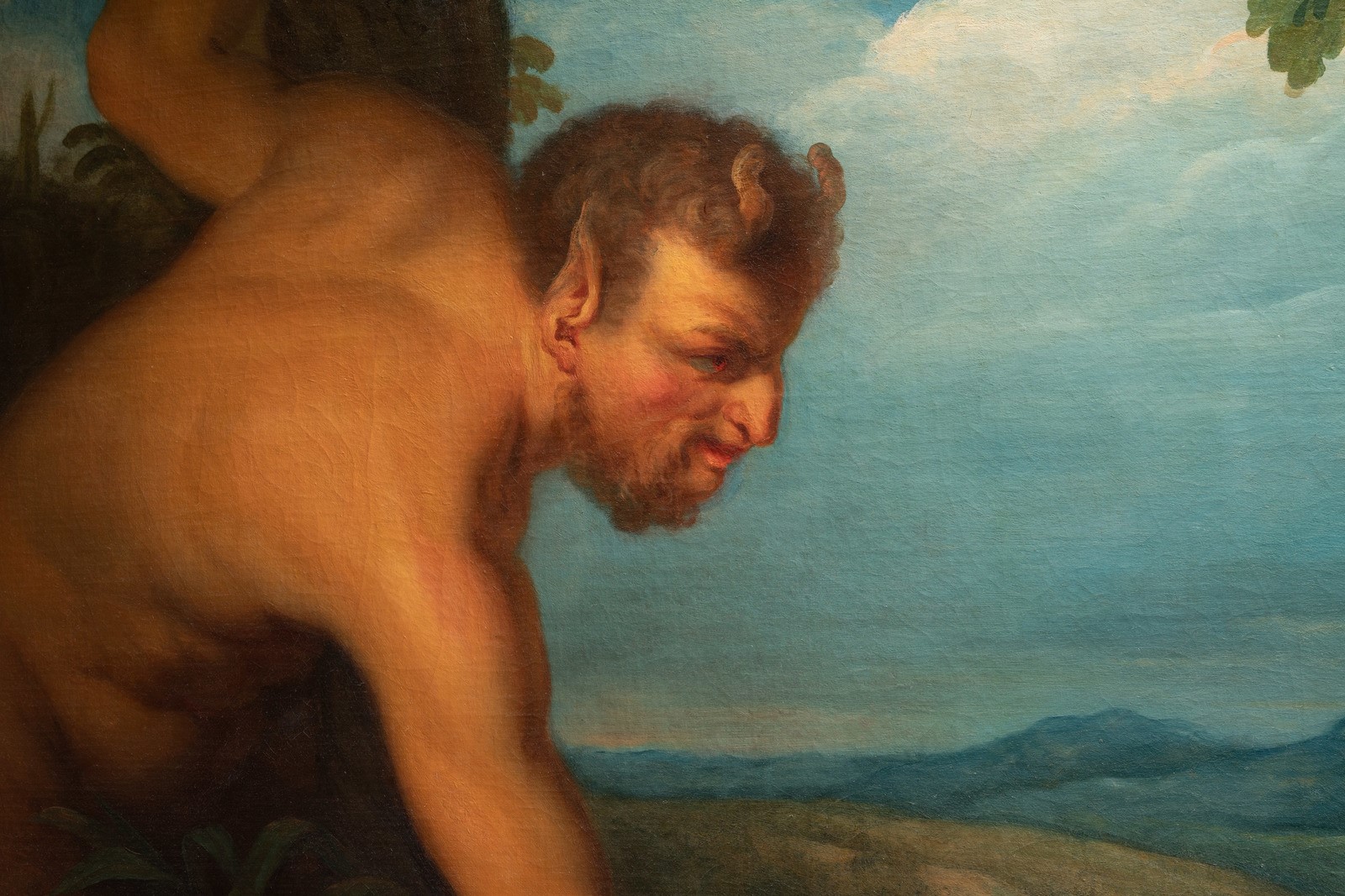 18th CENTURY FRENCH ARTIST Giove e Antiope. Oil on canvas . Cm 200,00 x 160,00.