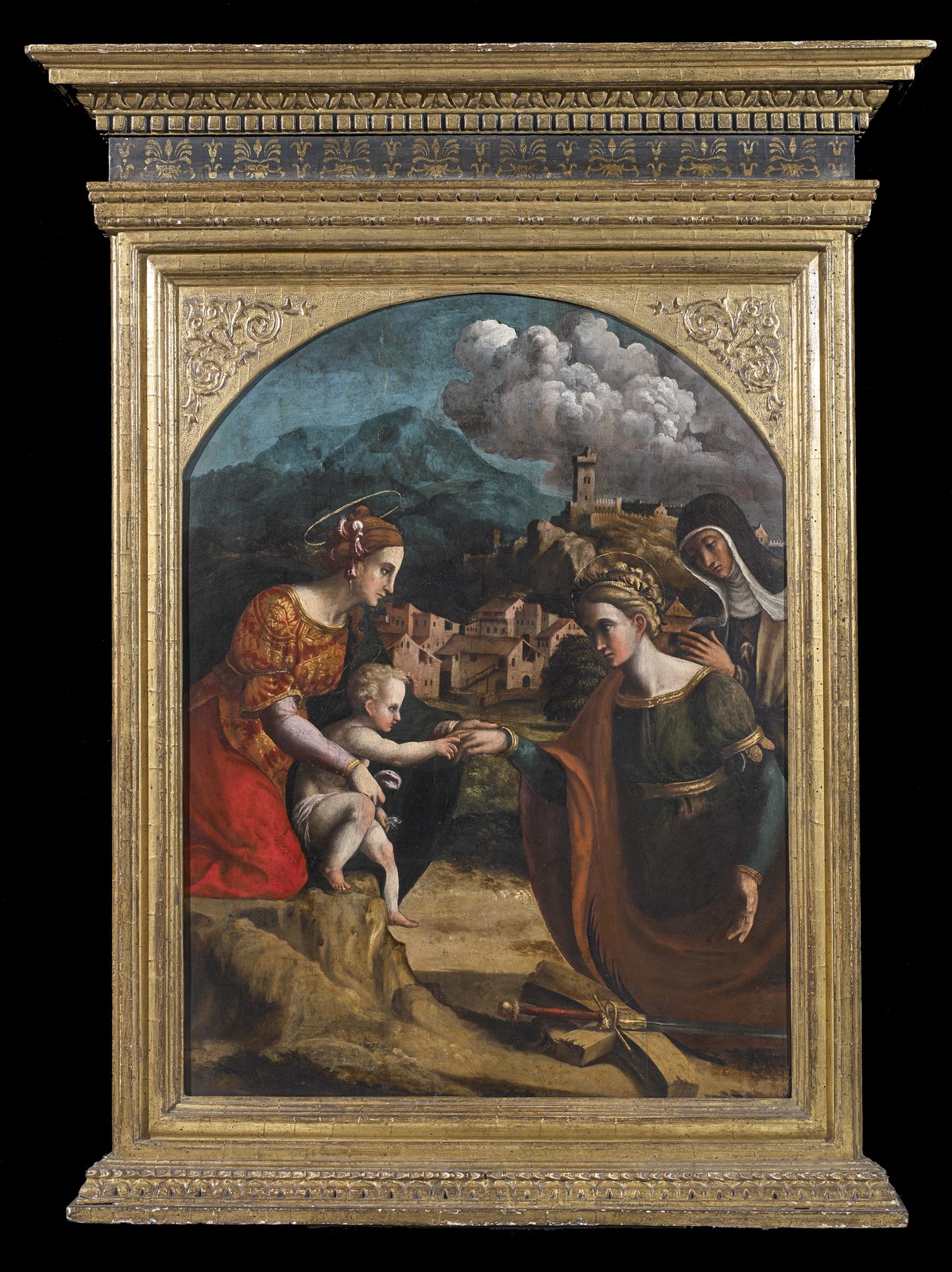 DI BERNARDO DE FACHAI MICHELE (1512 - 1572) Sposalizio mistico di Santa Caterina. Oil on board. Cm 62,00 x 85,00. Scheda critica di Marco Tanzi. Per la visione completata si veda il catalogo su www.capitoliumart.it