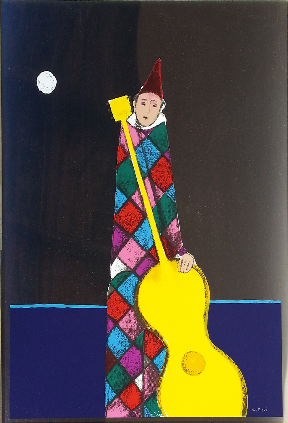 Lot 3 | Walter Pozzi (Bergamo 1911 - Milano 1989) Arlecchino con chitarra Grafica su...