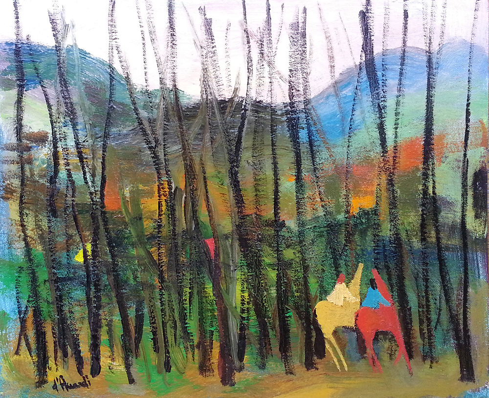 Gian Rodolfo D'Accardi (Palermo 1906 - Varese 1993) Cavalieri Olio su tela anno 1976 cm 40x50