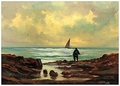 DOMENICO SELO SELOSKI Napoli 1924 – Livorno 1981 Senza titolo Olio su faesite 50 x 70. Firma in b. a d. base: 90
