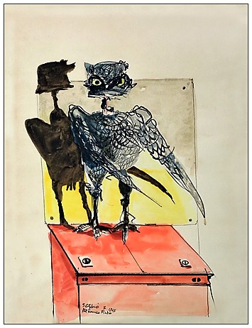 ENNIO CALABRIA Tripoli (Libia) 1937 Senza titolo 1965 Pittura e tec. mista su carta 65 x 50. Firma, data e dedica in b. a s. Autentica dell’autore + num. Archivio dell’Opera di Ennio Calabria con firma Rita Pedonesi su foto. base: 150