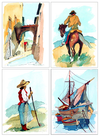 CLAUDIO DA FIRENZE (Claudio Domenici) Firenze 1943 Senza titolo Lotto composto da 4 litografie a colori es.P.A. Firma su ognuna in b. a d. (ciascuna 35 x 25 foglio e lito). base: 60
