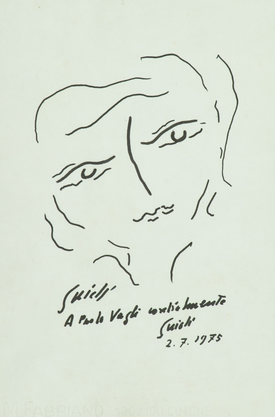 Virgilio Guidi Volto, 1975 China su carta, cm. 32x22 Firma, data e dedica a...
