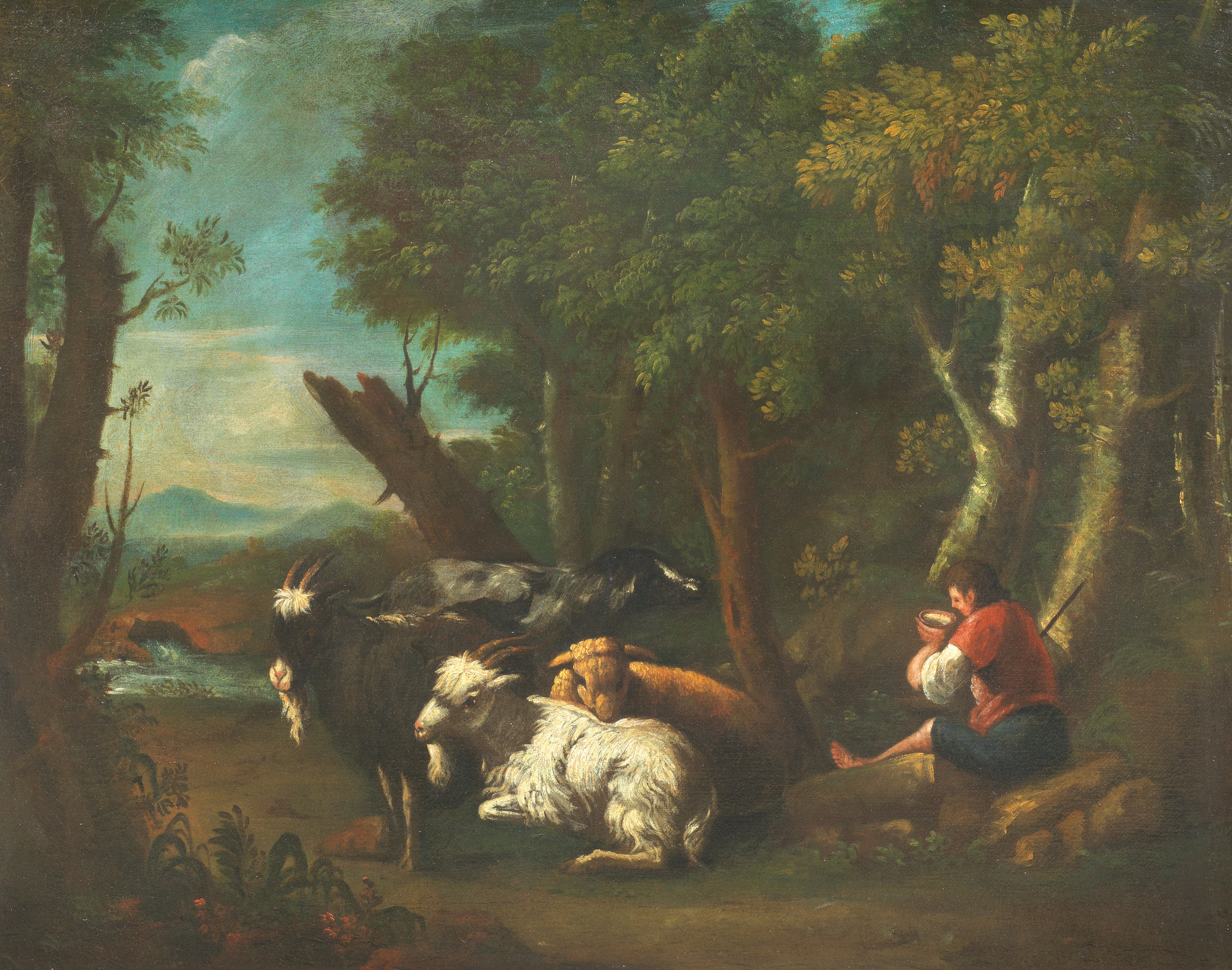 Francesco Londonio [cerchia di] SCENA PASTORALE Olio su tela, cm 92x109