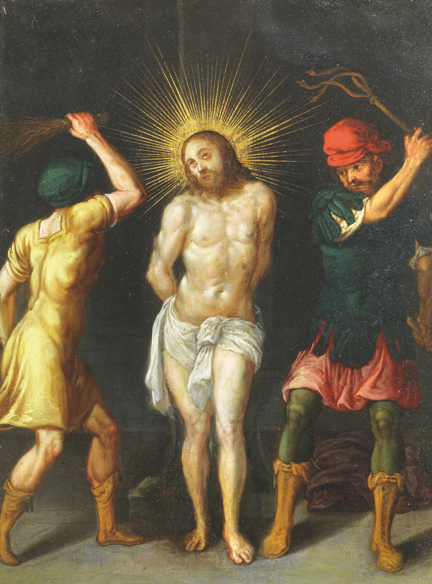 Scuola fiamminga della fine del secolo XVI LA FLAGELLAZIONE DEL CRISTO Olio su rame, cm 30,5x24 Provenienza: Collezione privata